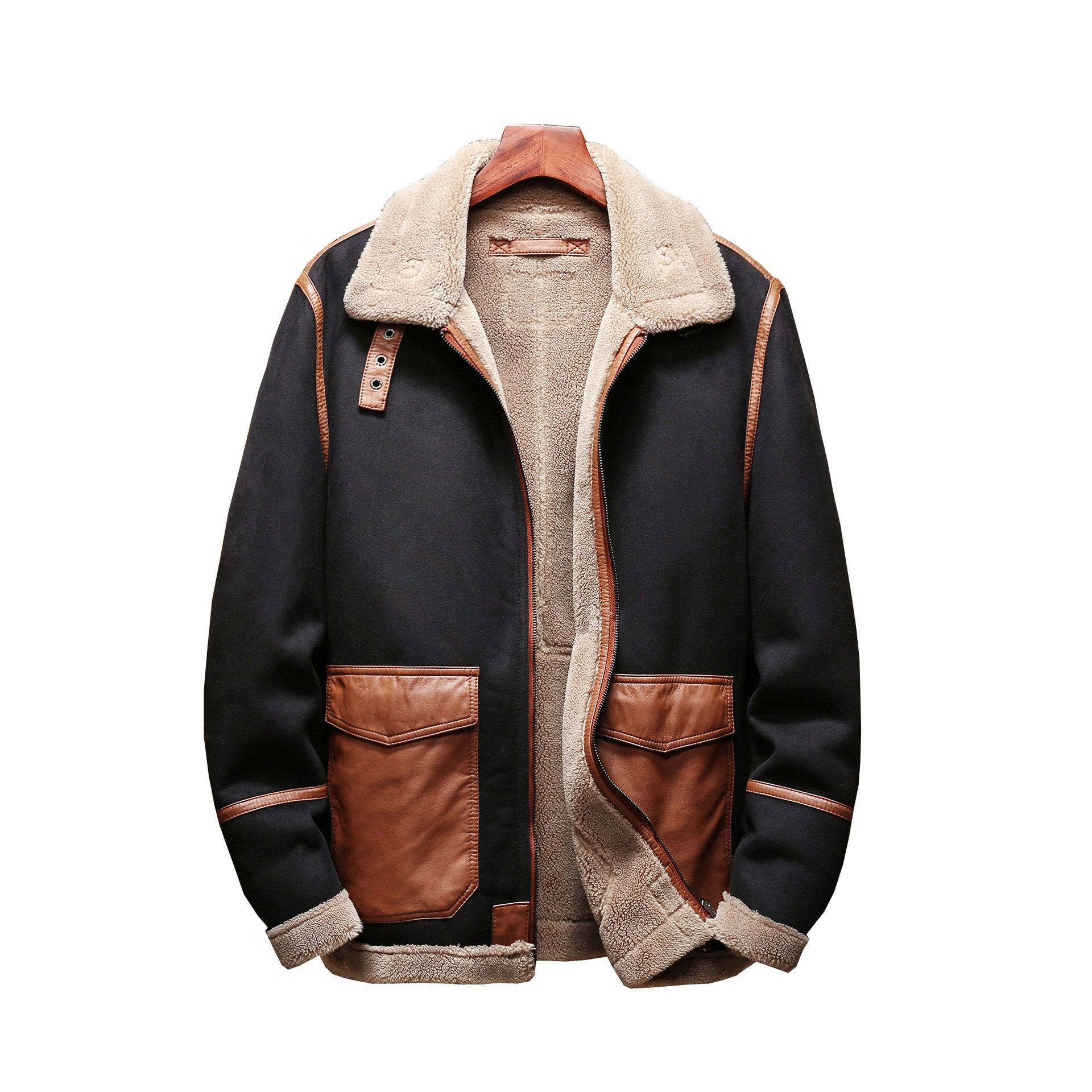 Foreign Trade Men's Large Size Casual Fur All-in-one Deerskin Velvet Spliced Plus Velvet Leather Jacket P Y1447