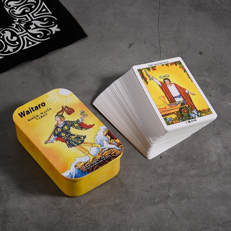 Iron Box Tarot Classic Portable Mini Tarot Complete Set Of Flower Shadow Waite Tarot Cat With Tutorial