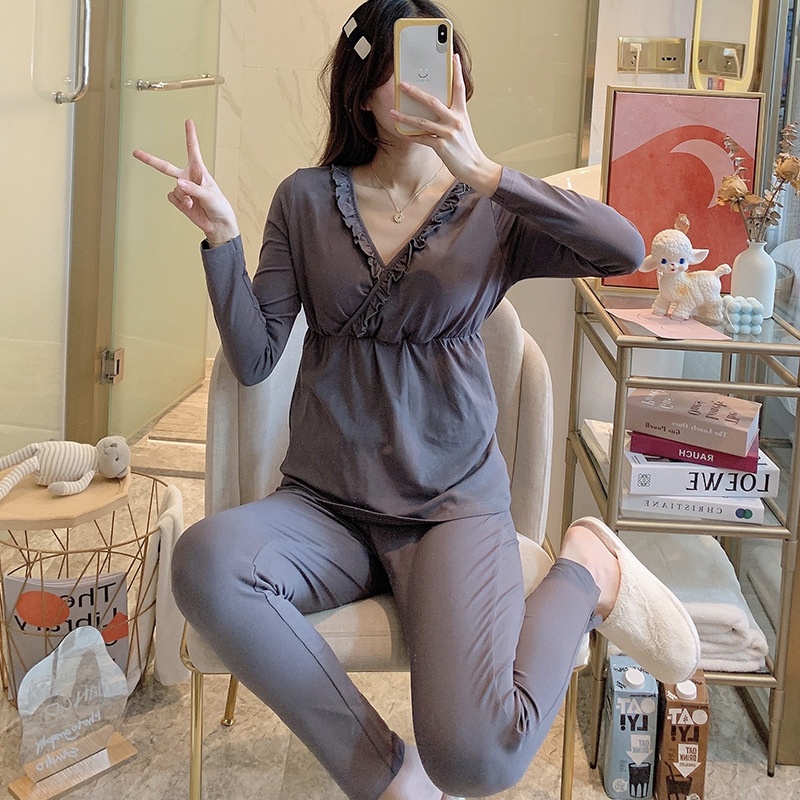 [ Ready Stock8611] Pregnant Women's Autumn Clothes And Autumn Pants, Nursing Pajamas, Feeding Set, Pure Cotton Confinement Clothes, Spring, Summer, Autumn And Winter Styles