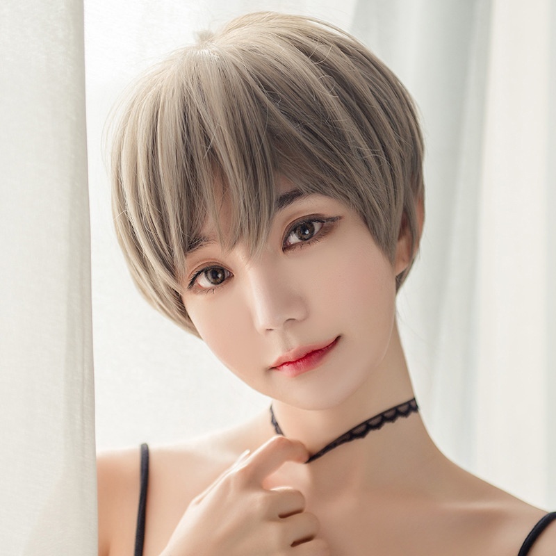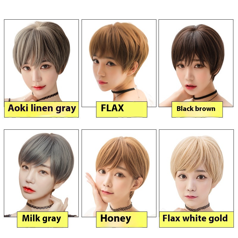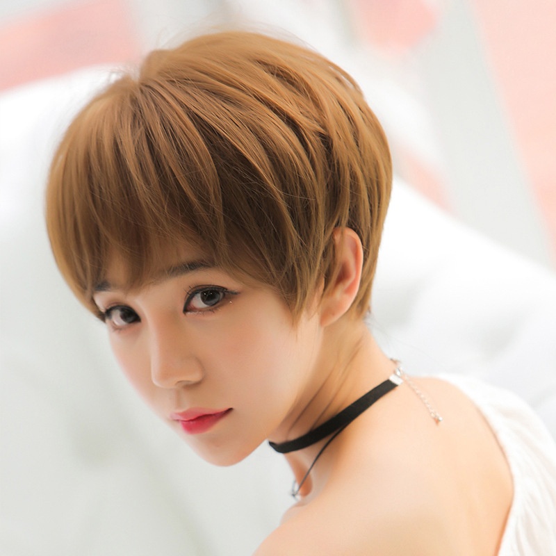 Wig Female Short Hair Bobo Bob Korean Handsome Short Straight Hair Natural Realistic Fluffy Hand-woven Big Scalp