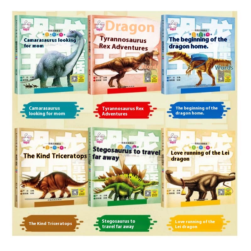 Dinosaur Kingdom Fairy Tale,6 Volumes With Color Pictures, Phonetic Notation, Dinosaur Book, Children's Comic Book, Audio Story Companion