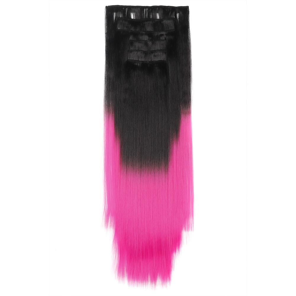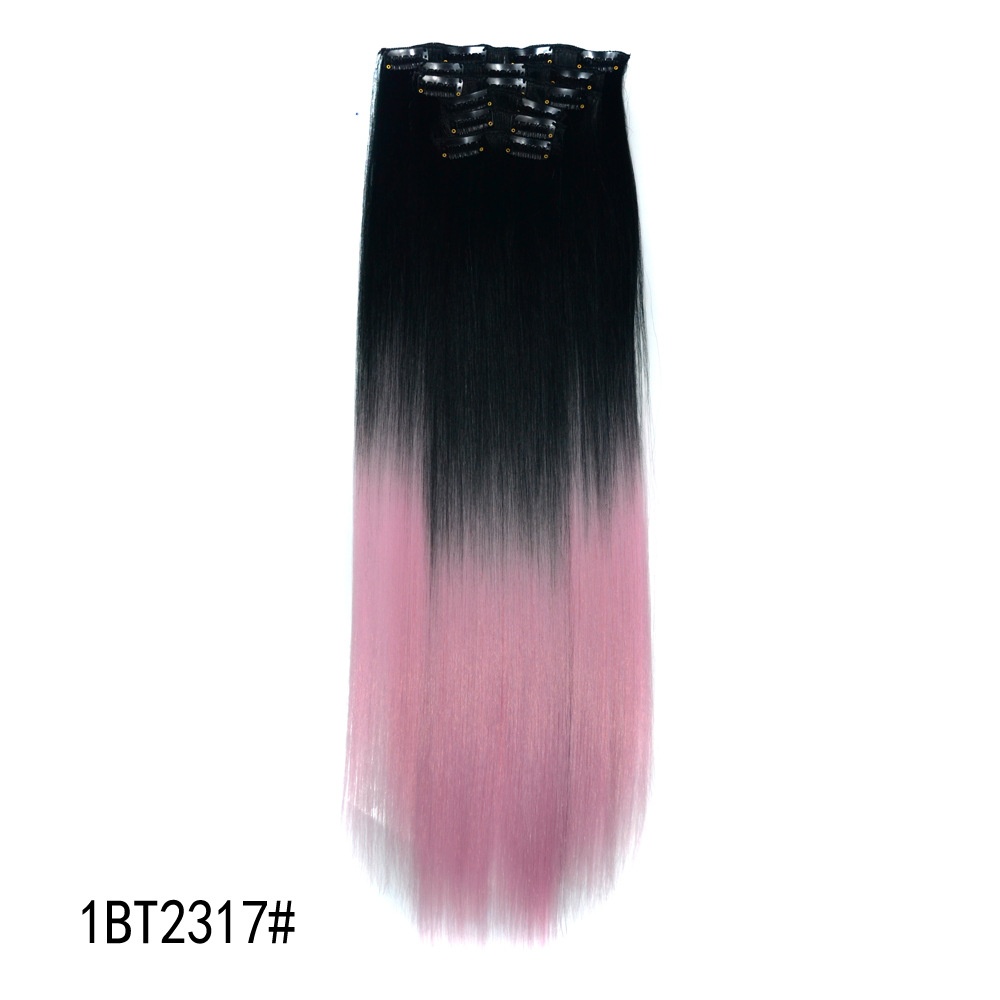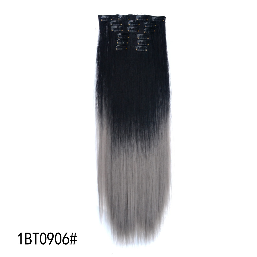 Wig Piece Clip Hair6 Piece Set Straight Color Gradient Hair Extension Piece16 Card Clip Hair Wig Set