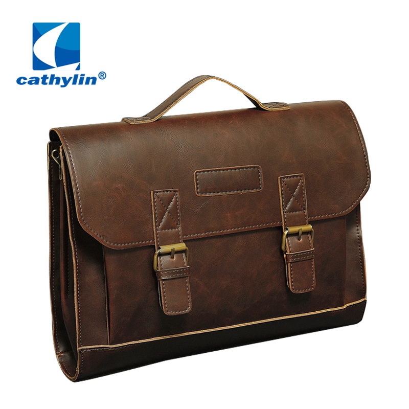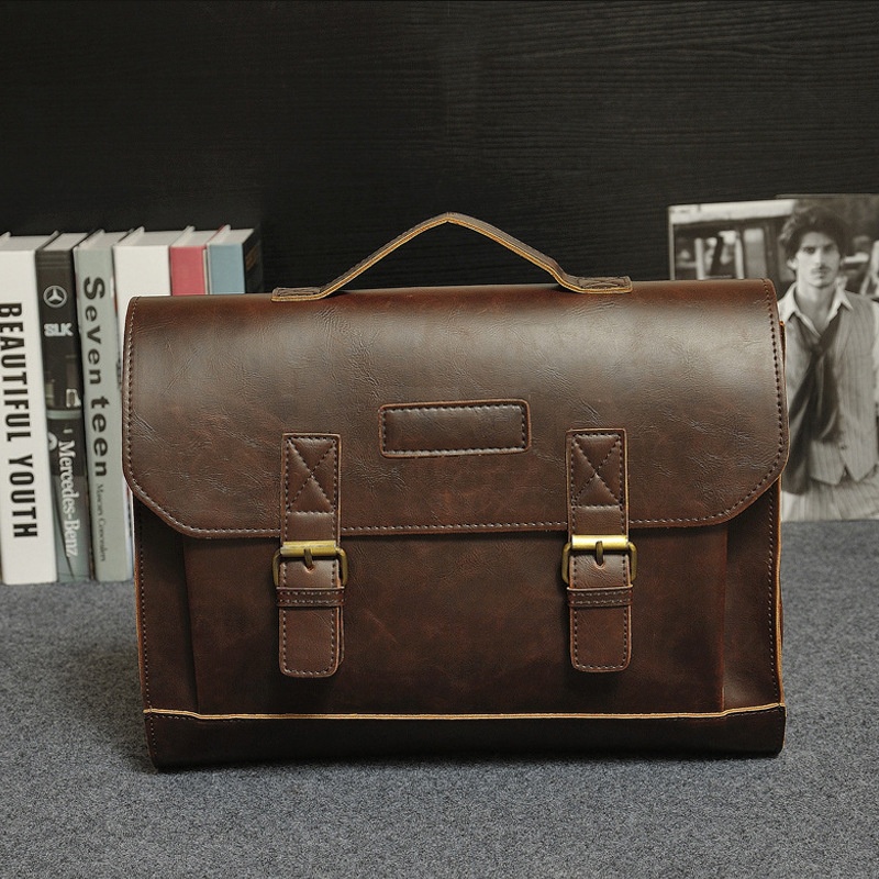 Crazy Horse Leather P U Fashion Men's Handbag Car Stitching Horizontal Style One-shoulder Business Briefcase Men's Bag