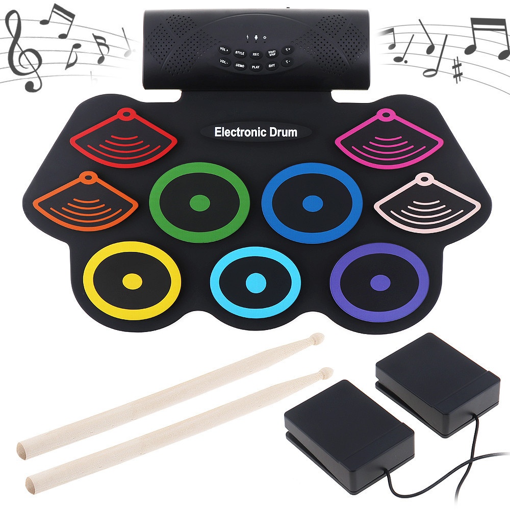 E-commerce Hand-rolled Electronic Drum9 Drums Built-in Lithium Battery With Speaker Playable D T X Silicone Drum Set