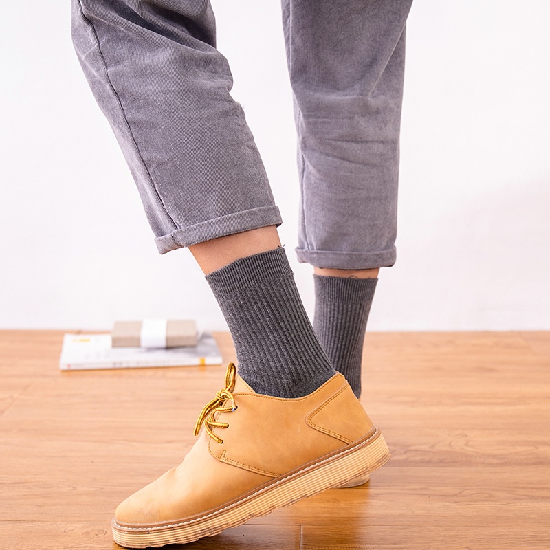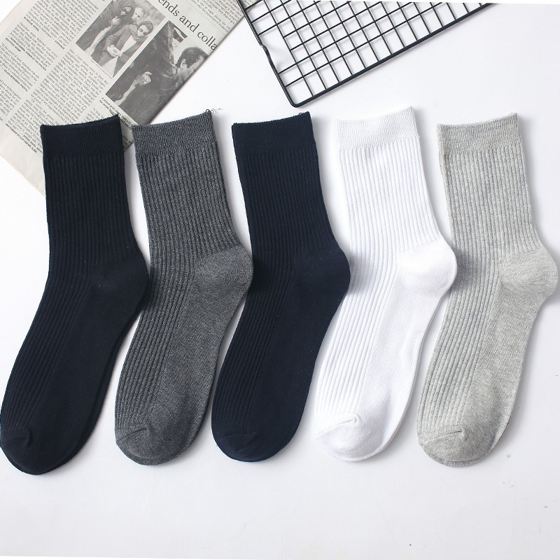 Socks Men's Autumn And Winter Mid-calf Socks Pure Cotton Business Men's Socks Solid Color Striped Stockings Double-needle Cotton Socks
