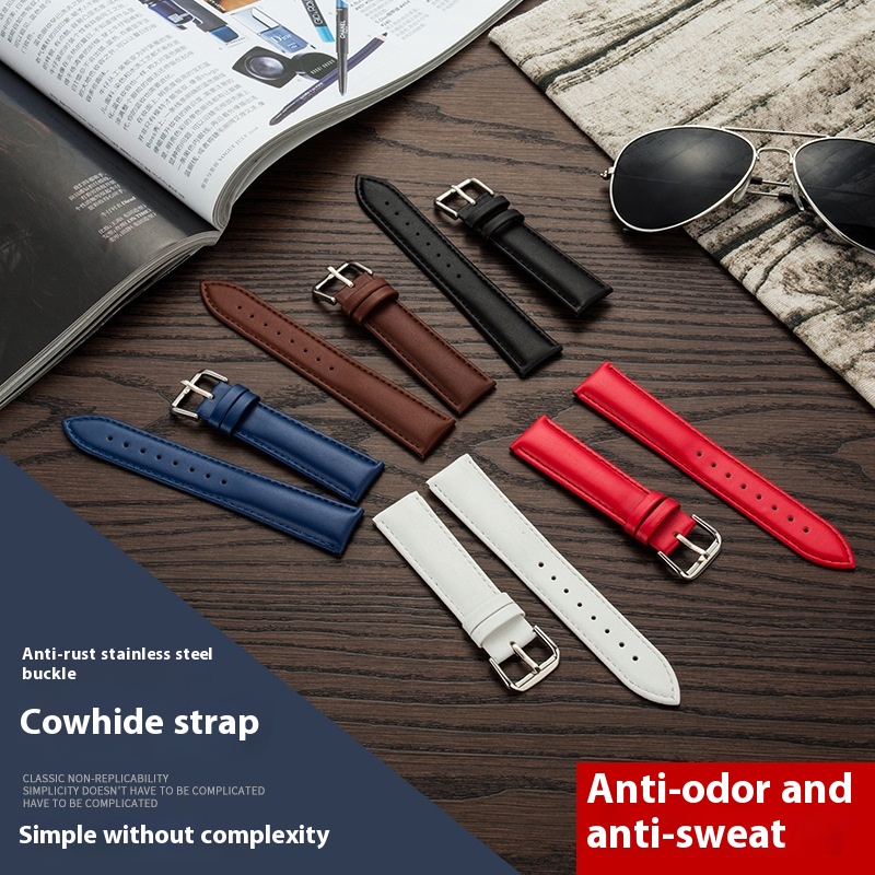 Watch Strap Genuine Leather Plain Soft Watch Strap Pin Buckle Men's Watch Watch Accessories