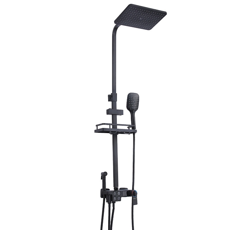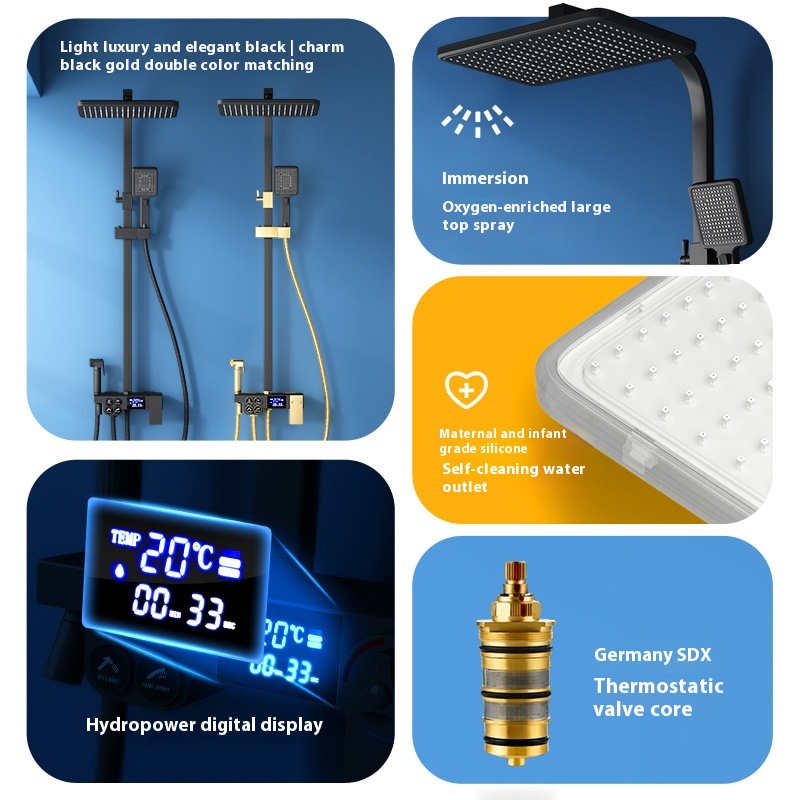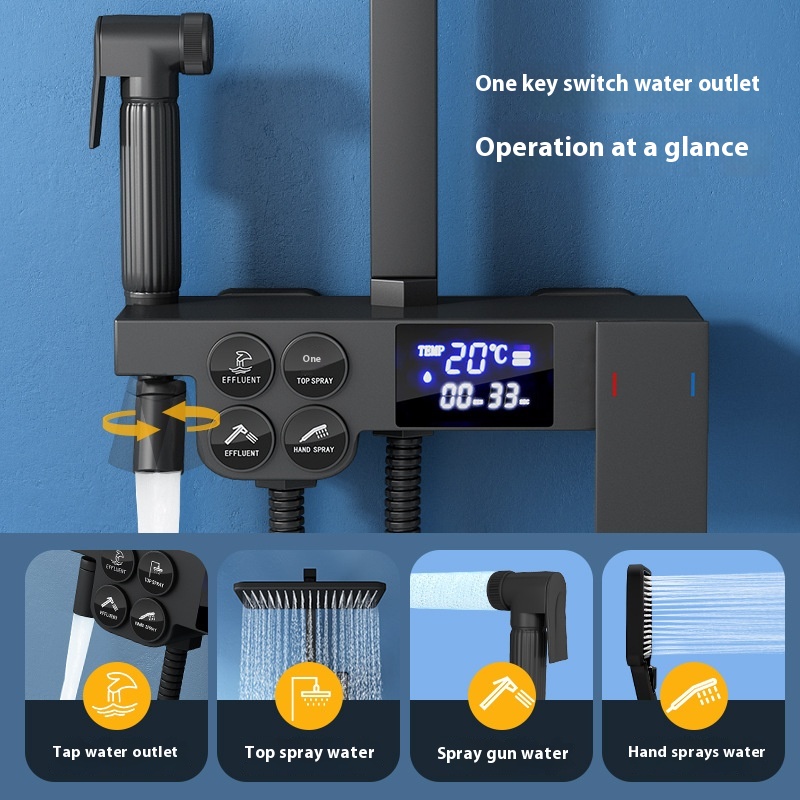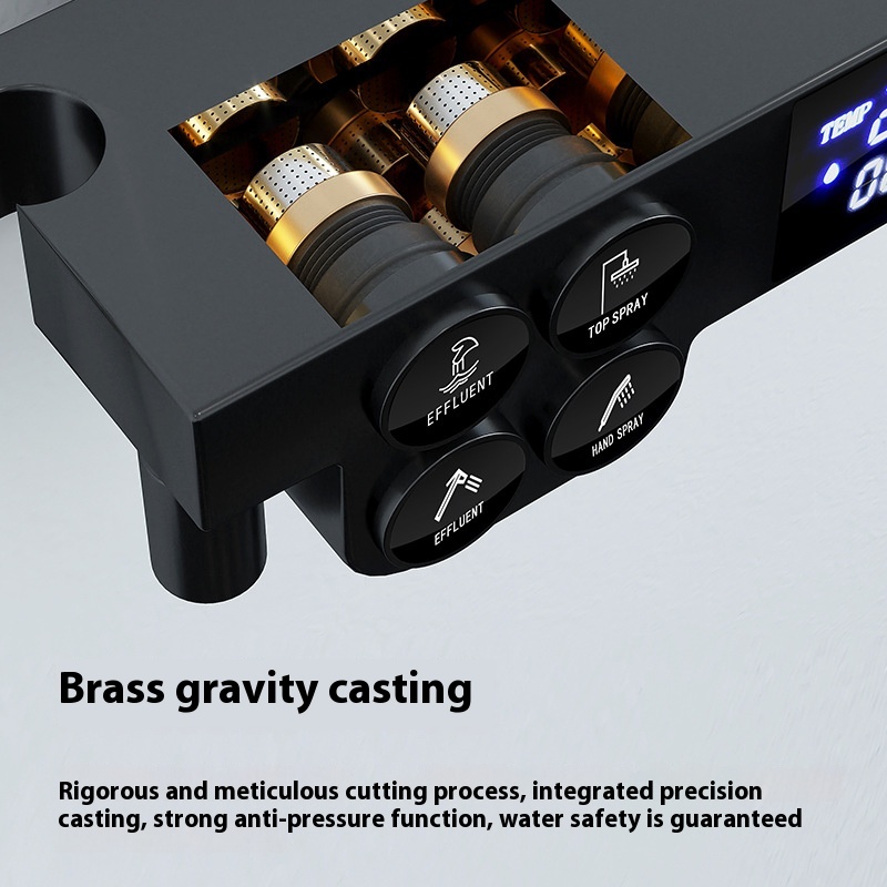 Bathroom Household Black Paint Constant Temperature Digital Display Shower Set Full Copper Body Shower Booster Nozzle