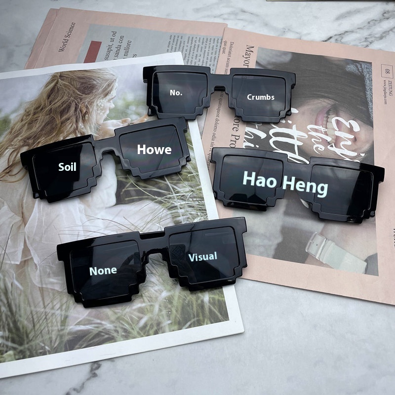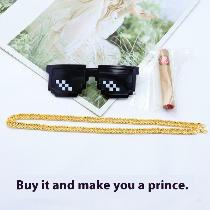 Large Mosaic Glasses Two-dimensional Outfit B Three-piece Set Of Sunglasses Props Cigar Gold Chain Single And Double Row Sunglasses