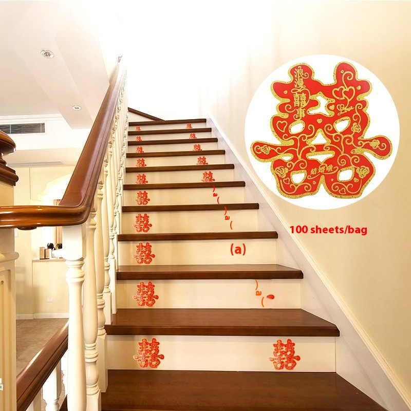 Wedding Happy Words Wedding Supplies Self-adhesive Happy Word Stickers Stairs Wedding Room Layout Wedding Decoration Xiaoxizi Stickers