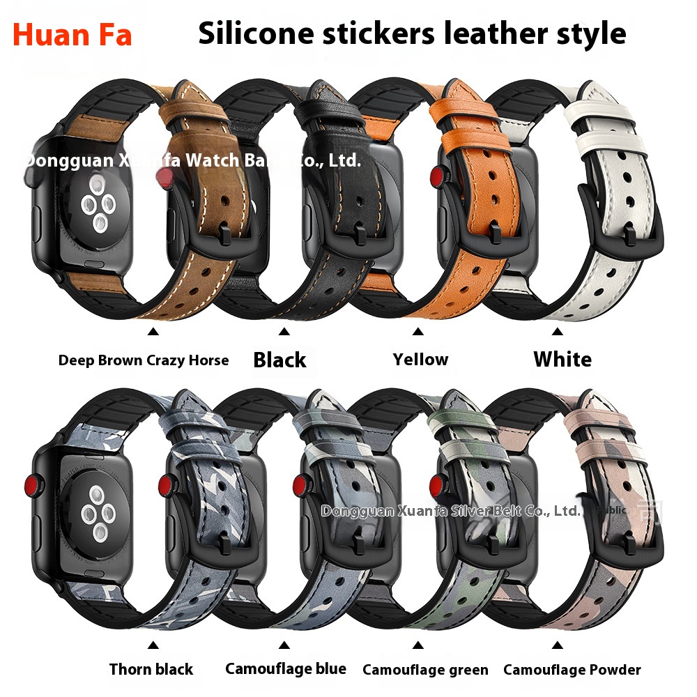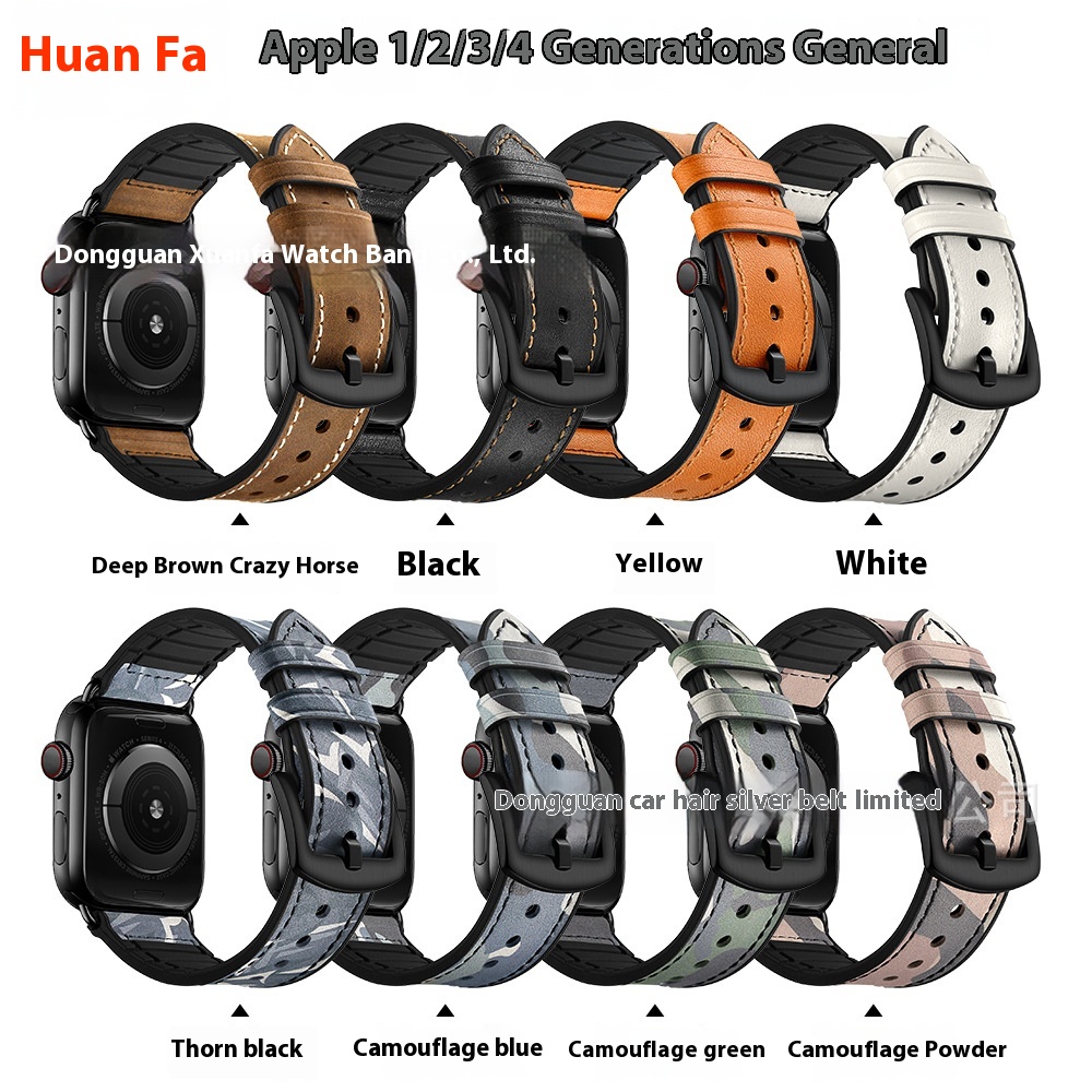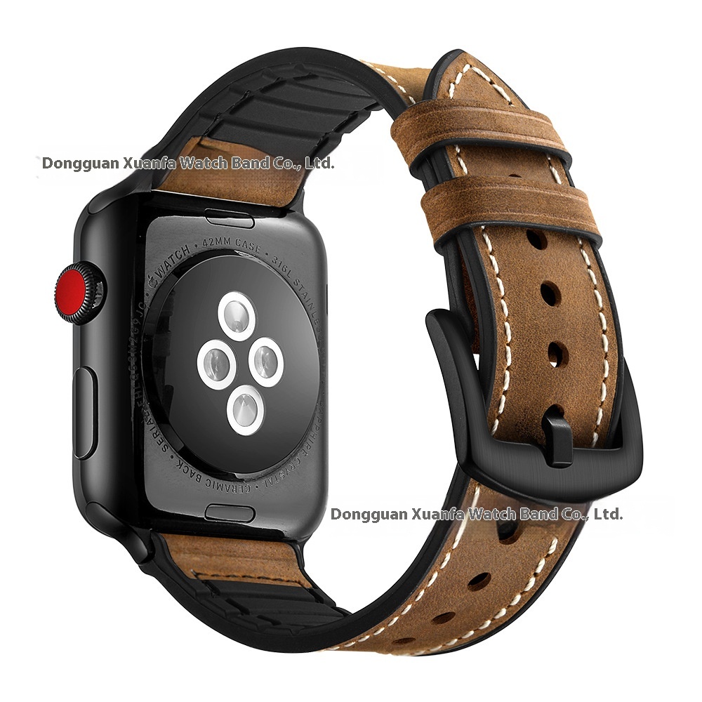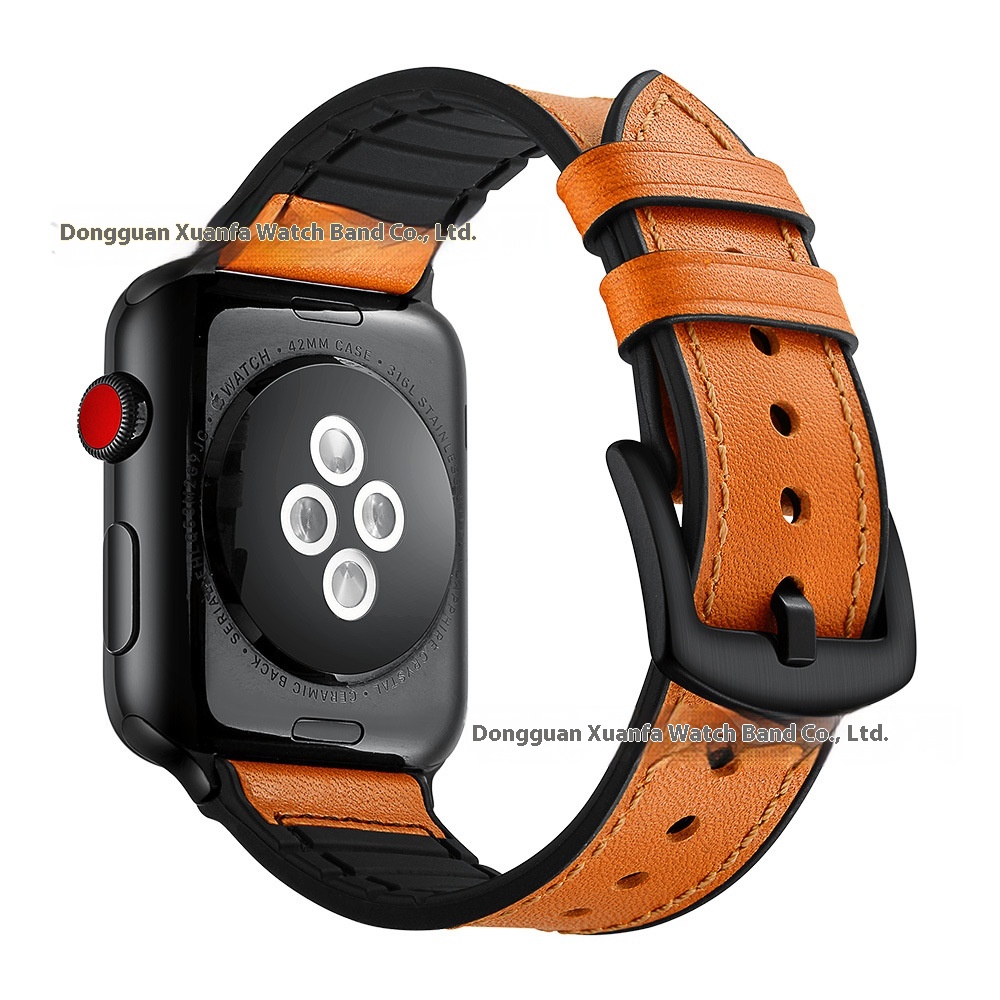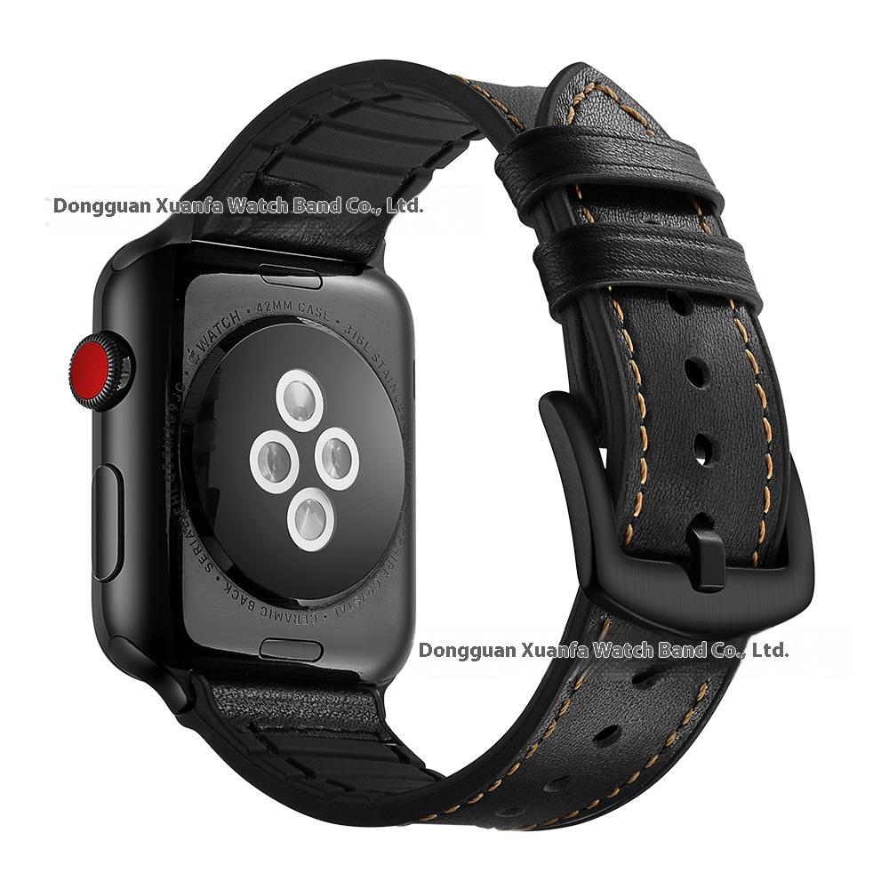 Suitable For Apple Watch Strap Apple I Watch12345678 S E Generation Silicone Top Layer Genuine Leather Strap