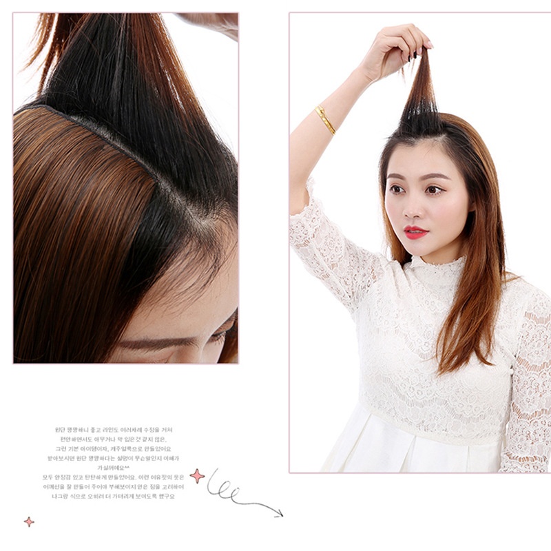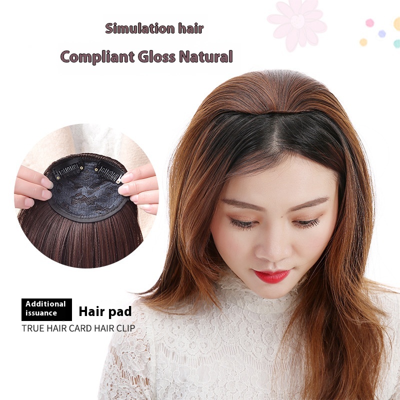 Wig Piece, Real Hair Pad, Wig, Women's Hair Root Fluffy Device, Invisible, Traceless Thickening On Both Sides, Head Replacement Piece