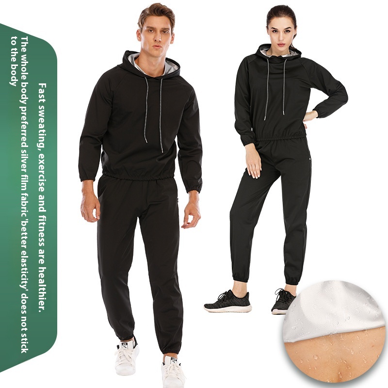 Outdoor Long-sleeved Loose Lycra Silver Film Sweat Suit Suit For Women And Men Sports Running Sweat Suit Two-piece
