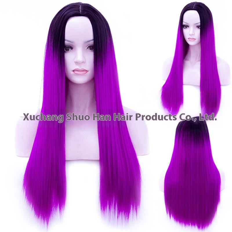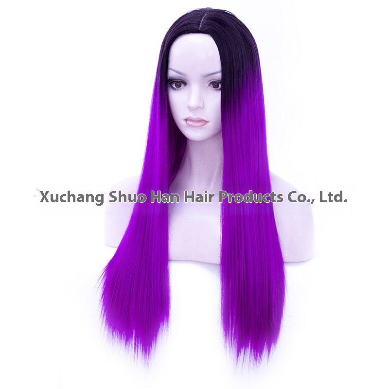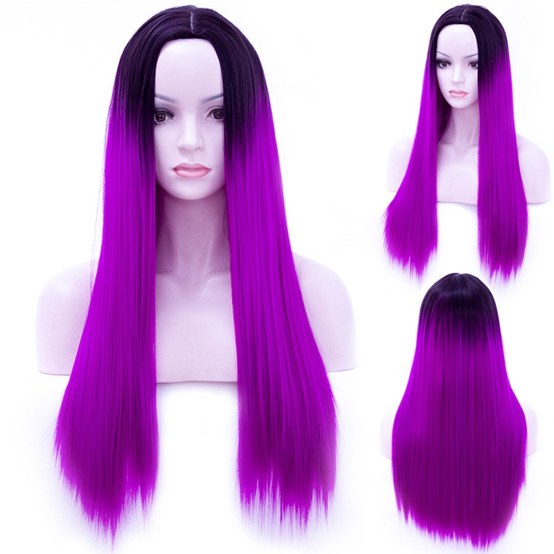 Middle-parted Gradient Color Long Straight Wig For Women With Long Straight Hair Gradient Purple High Temperature Silk Wig Xuchang