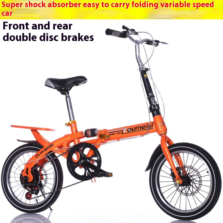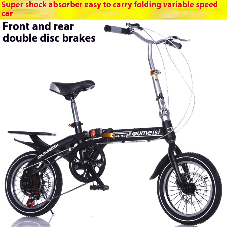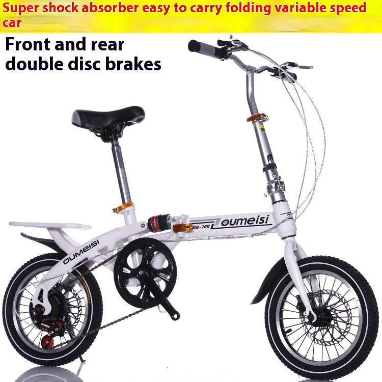 1416-inch Front And Rear Disc Brake Shock-absorbing Folding Variable Speed Single-speed Pedal Bicycle For Male And Female Students, Adult Bicycle