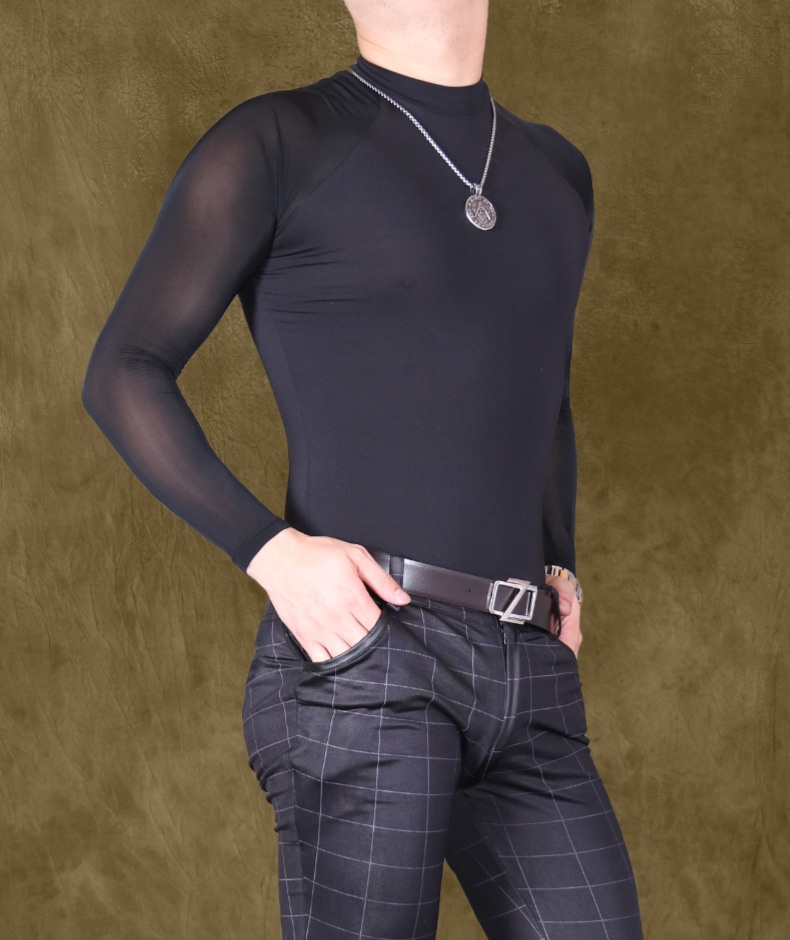 Summer Men's Ice Silk Sleeve Modal Underwear Tights N T22 Sexy Fashion Long-sleeved Jumpsuit T-shirt