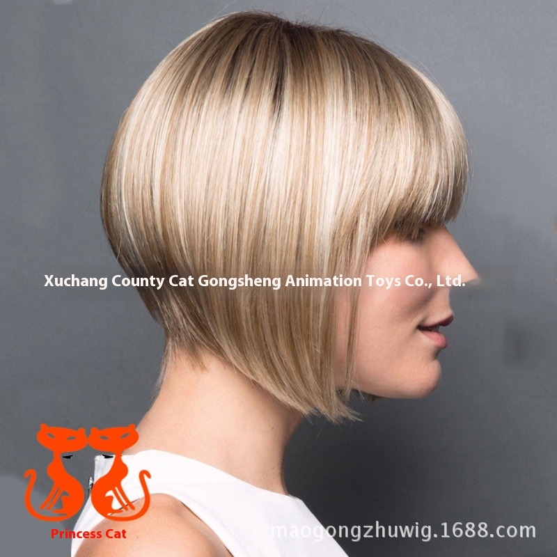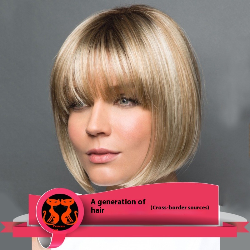 European And American Fashion Wigs For Women Beige Short Straight Hair Bob Headgear Chemical Fiber Hair Foreign Trades