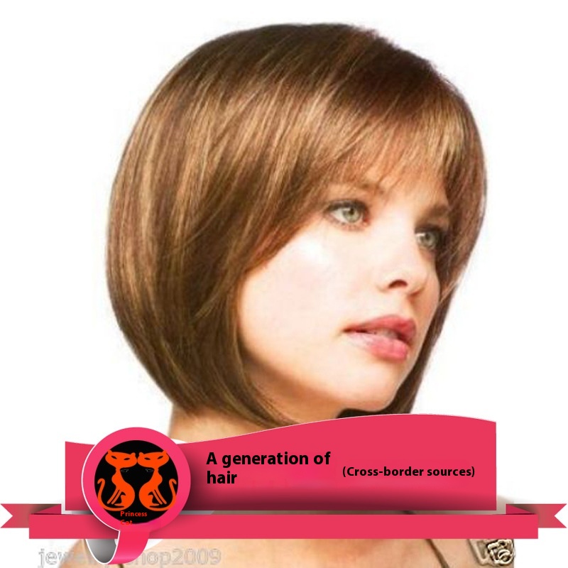 Foreign Trade Bobo Wig For Women With Short Straight Hair, Fashionable Golden Brown Bob Wig For Women With Short Hair, Chemical Fiber High Temperature Wire Headgear