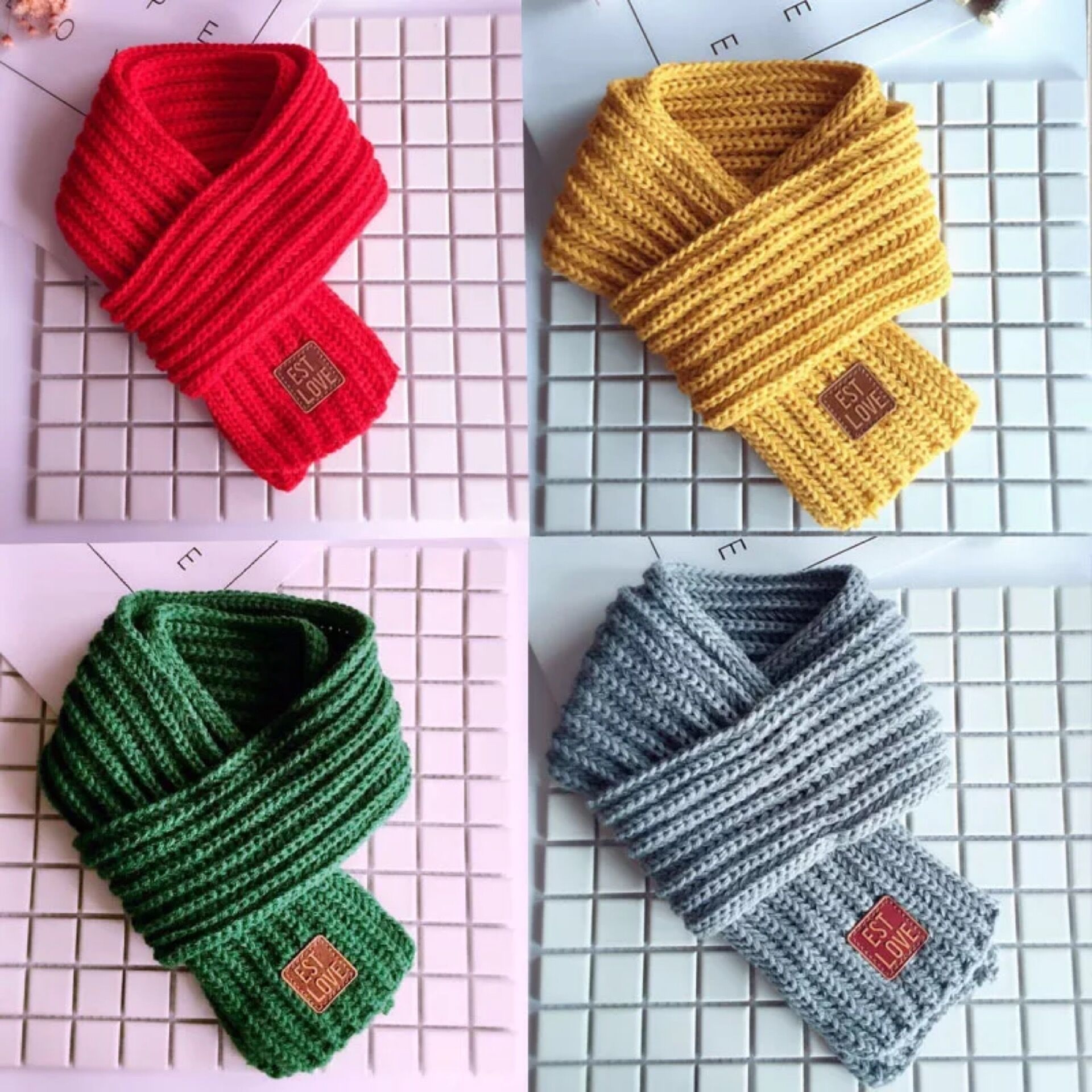 Korean Style Children's Scarf For Boys And Girls In Autumn And Winter Thickened And Warm Solid Color Knitted Wool Cute Simple Scarf