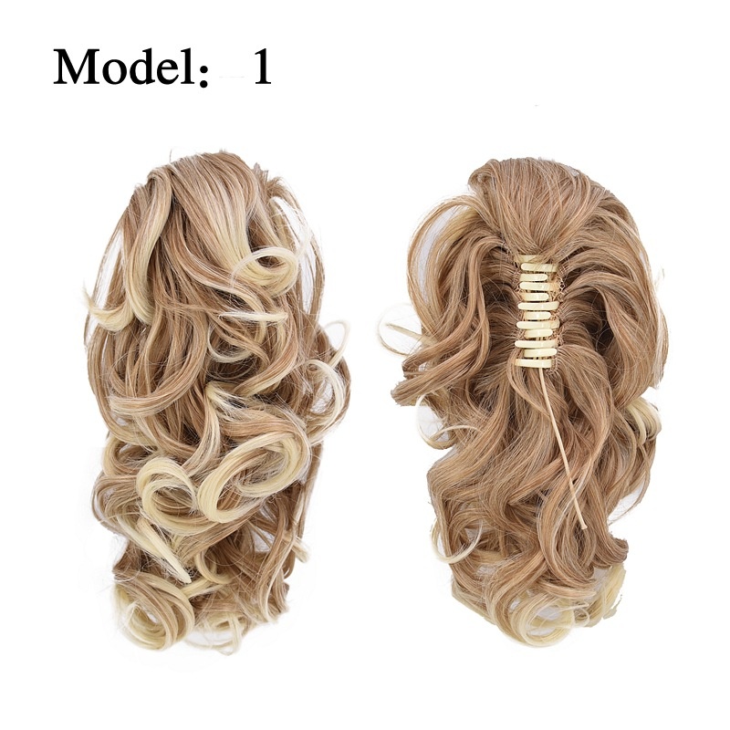 Foreign Trade European And American Style Claw Clip Ponytail Wig For Women With Curly Hair, Pear Blossom Curl Tiger Clip, Gradient Short, Medium And Long Claw Clip Ponytail