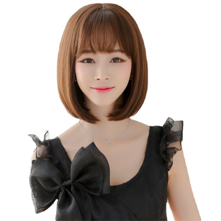 Japanese And Korean Wig Short Hair Female Bobo Head Air Bangs Short Straight Hair Sweet And Cute Face Shaping Personalized Wig Set