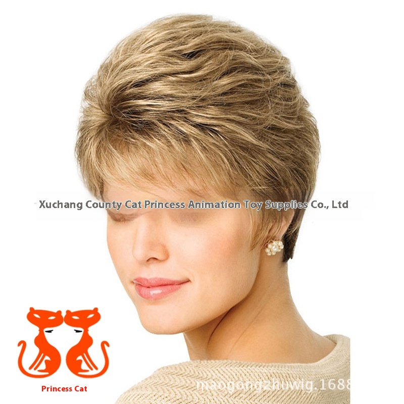 Foreign Trade European And American Wigs For Women With Short Hair, Golden Short Curly Hair, White Wigs, Headgears,