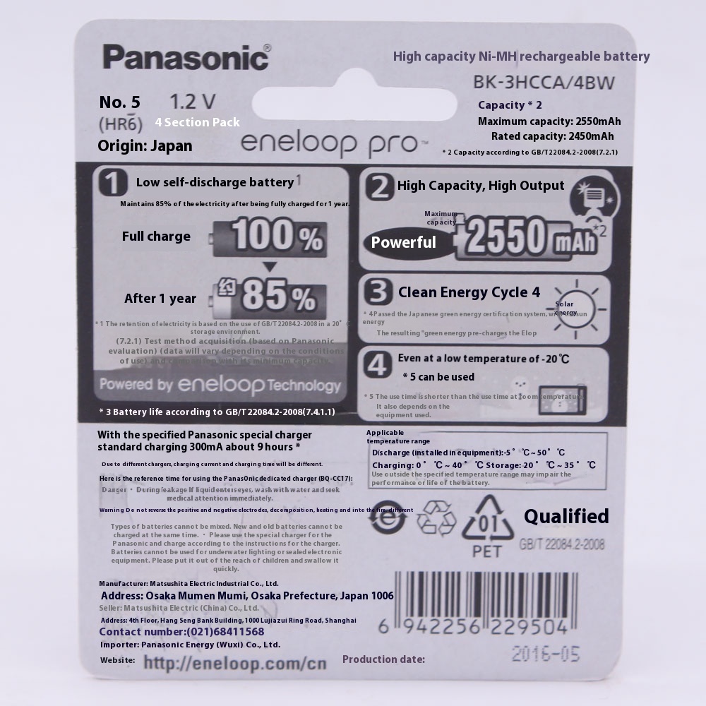 Panasonic Eneloop No.5 Rechargeable Battery4 Cells A A No.5 Pro Nickel Metal Hydride Camera Flash Toy