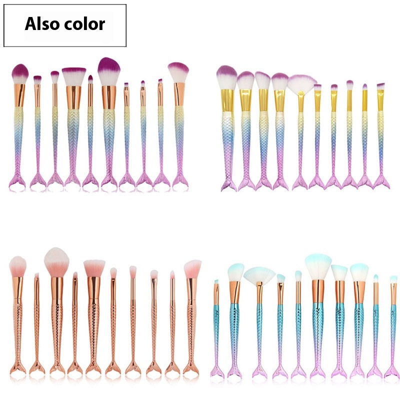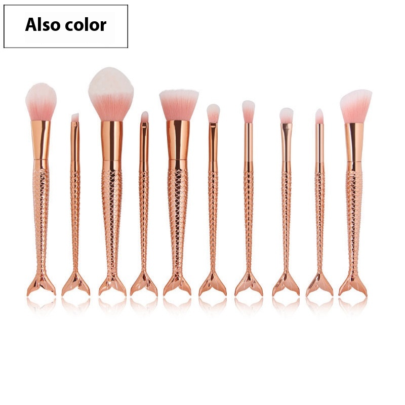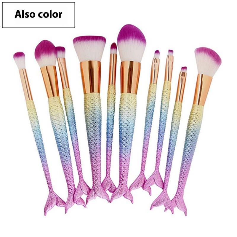 Makeup Brushes10 Pcs Mermaid Makeup Brush Fish Tail Set Facial Beauty Tools Direct Sale