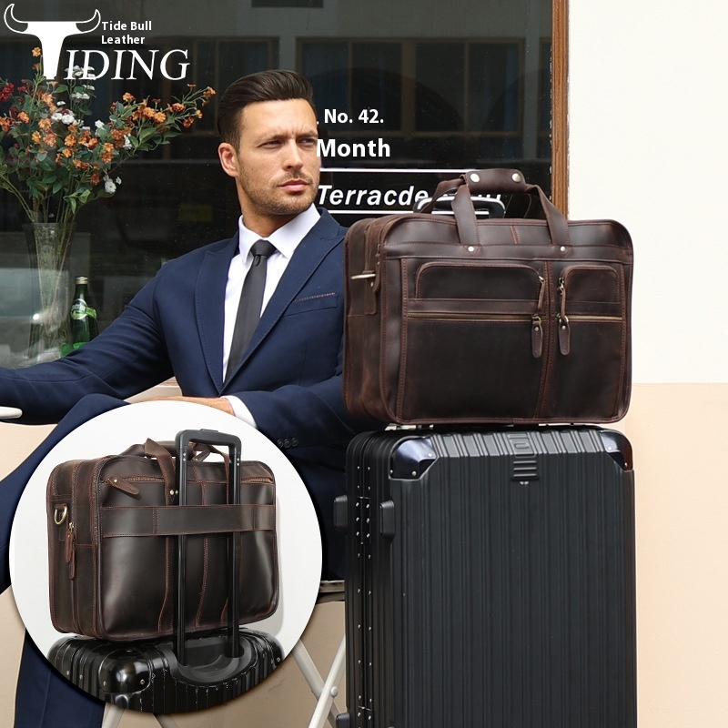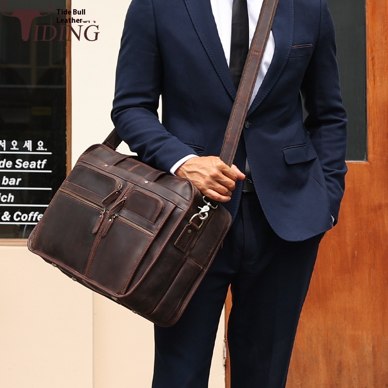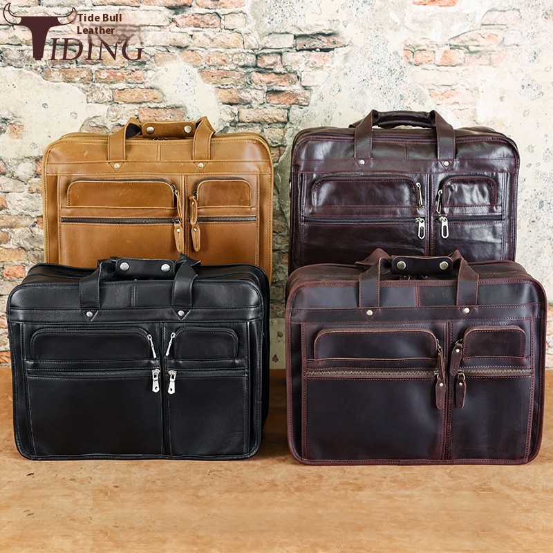 Y Cow Leather Goods Genuine Leather Business Briefcase First Layer Cowhide Men's17-inch Laptop Bag Crazy Horse Leather Shoulder Bag