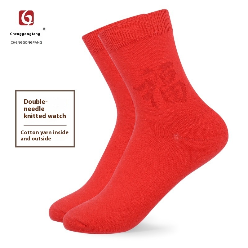 Big Red Socks Festive Blessing Socks Chenggongfang Brand Cotton Socks Big Red Socks For Men And Women Couple Socks For The Year Of The Zodiac