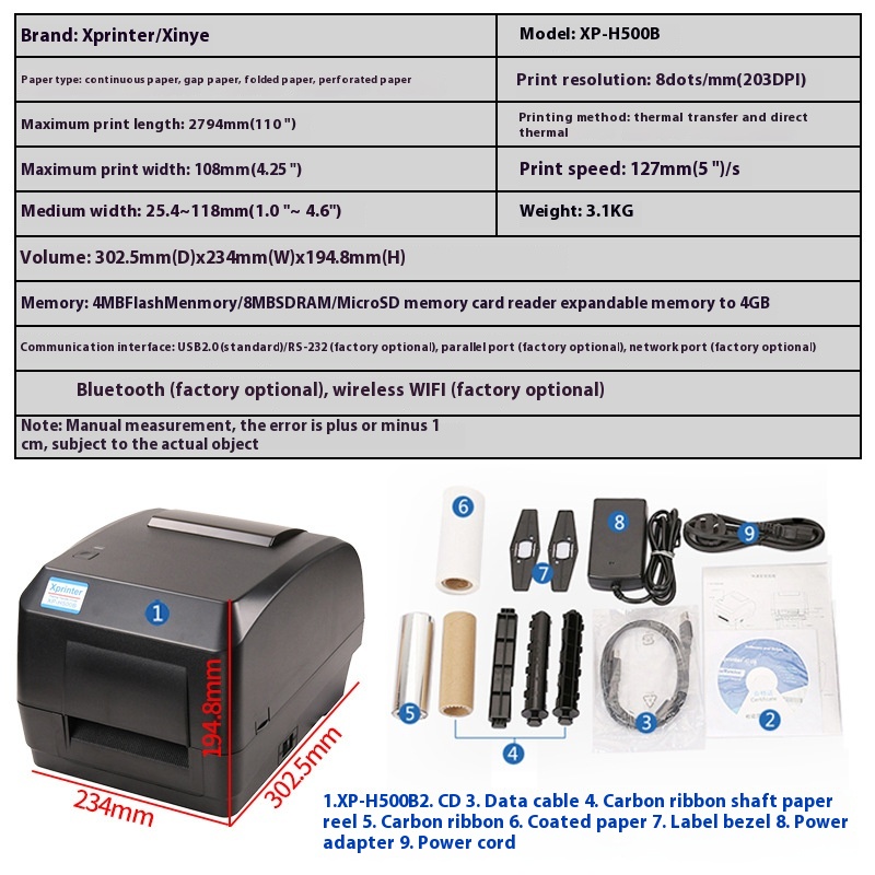 Xinye X P- H500 B Barcode Printer Thermal Transfer Printer Jewelry Label Self-adhesive Label Thermal Printing