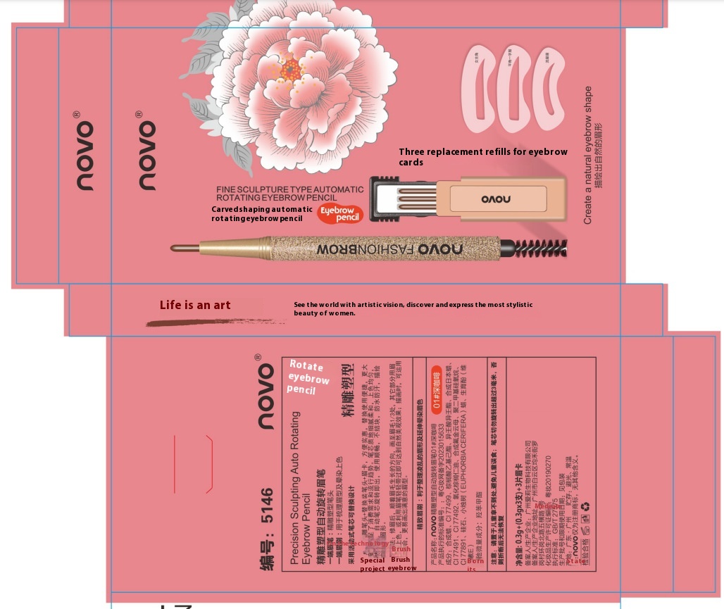 N O V O Automatic Rotating Eyebrow Pencil Comes With3 Replacement Refills+ Eyebrow Card, Long-lasting Waterproof And Sweat-proof, Clear Roots Without Smudging5146