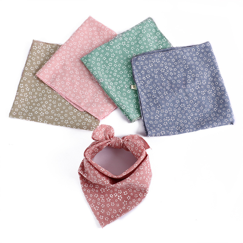 Korean Style Cute Cotton And Linen Printed Children's Saliva Scarf For Boys And Girls Baby Square Scarf