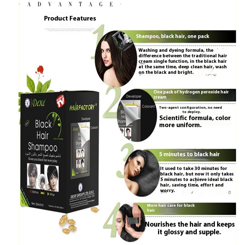 Foreign Trade Export Single Wash And Dye Black Shampoo White Hair Dye Black Hair Natural Black Covering White Hair Shampoo