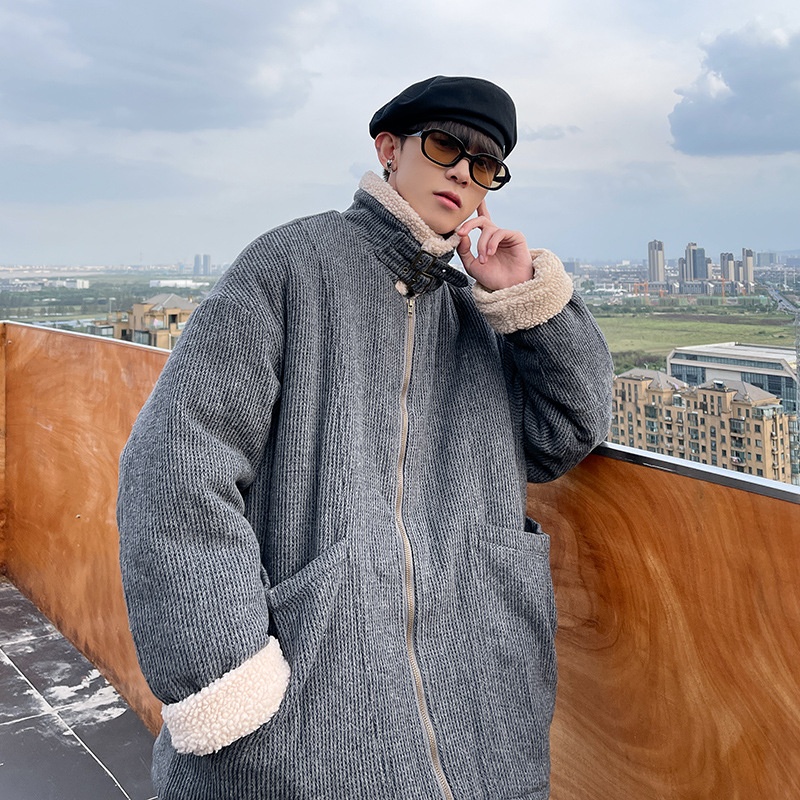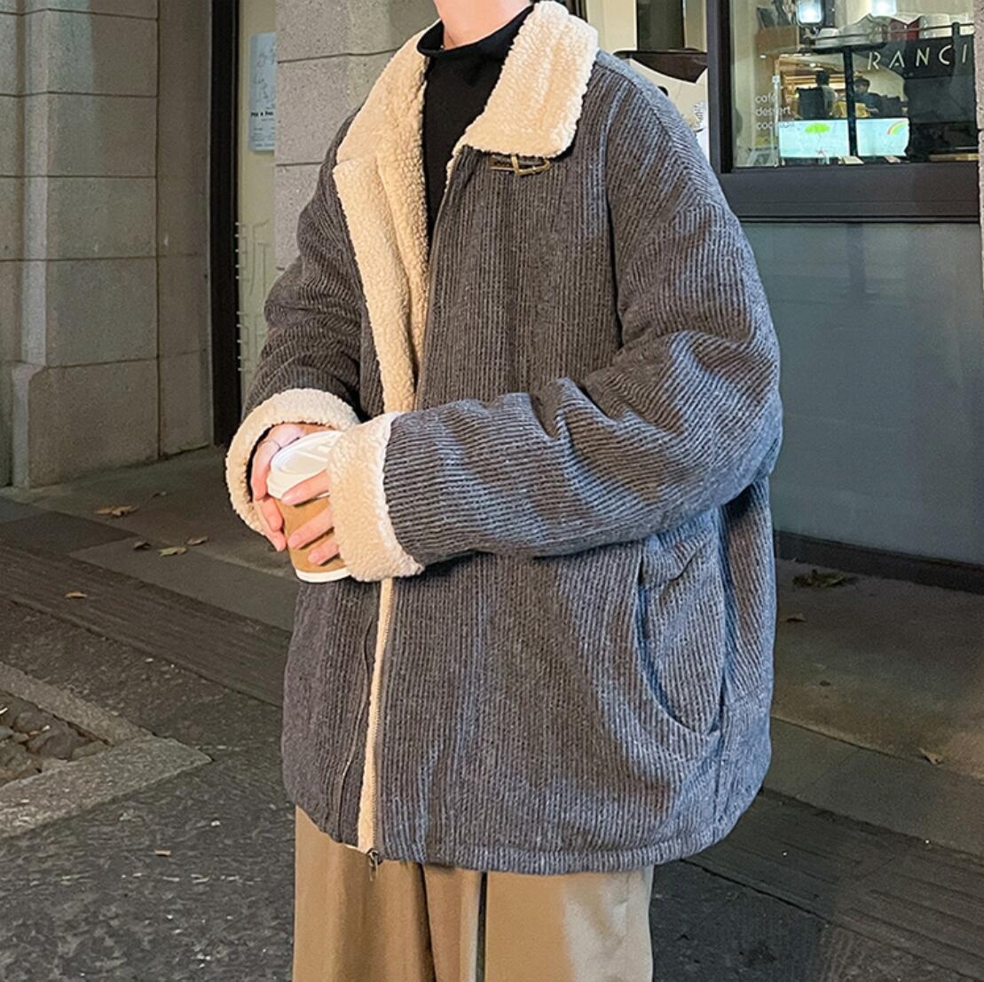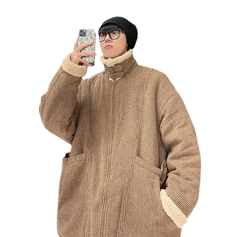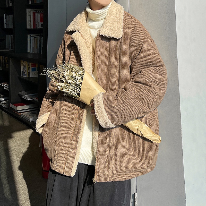 American Retro Corduroy Cotton Jacket Men's Winter Brand Lamb Wool Plus Velvet Thickened Cotton Coat Lapel Coat