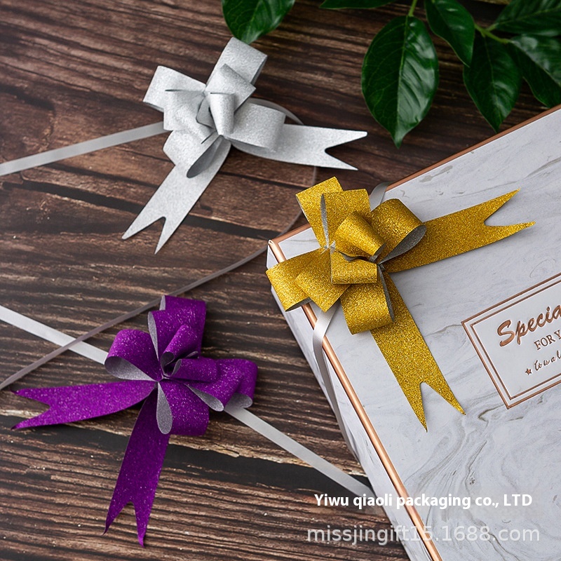 30mm Medium Glitter Film Hand-pull Flower Wedding Supplies Decorative Ribbon Gift Box Bow Hand-pull Flower