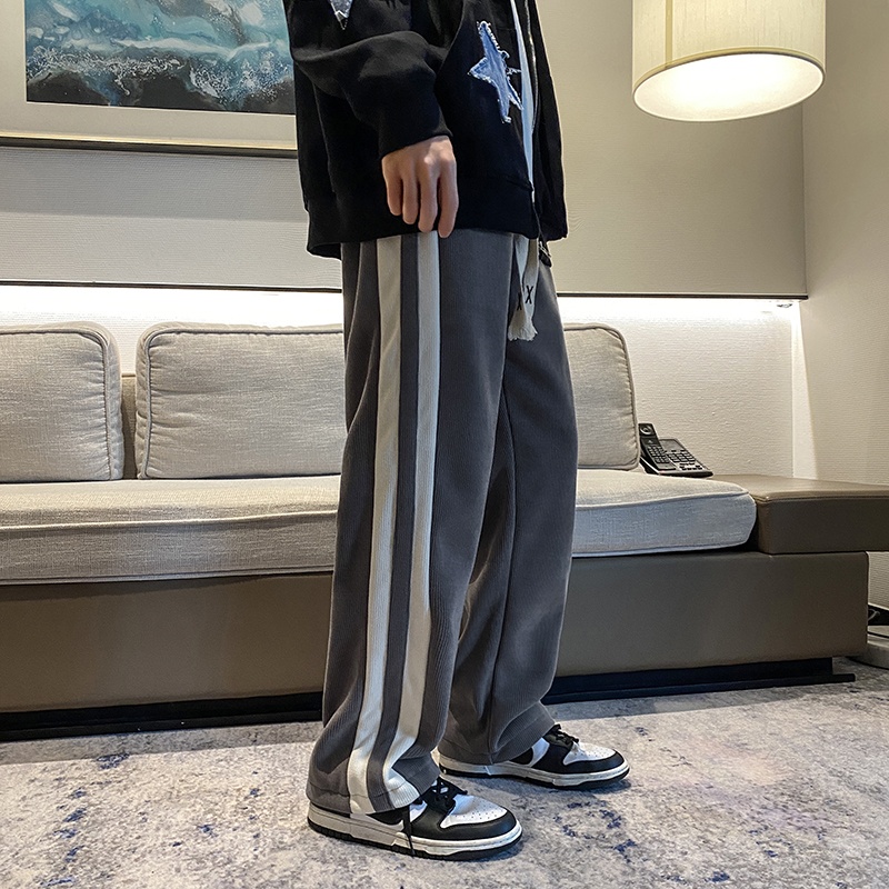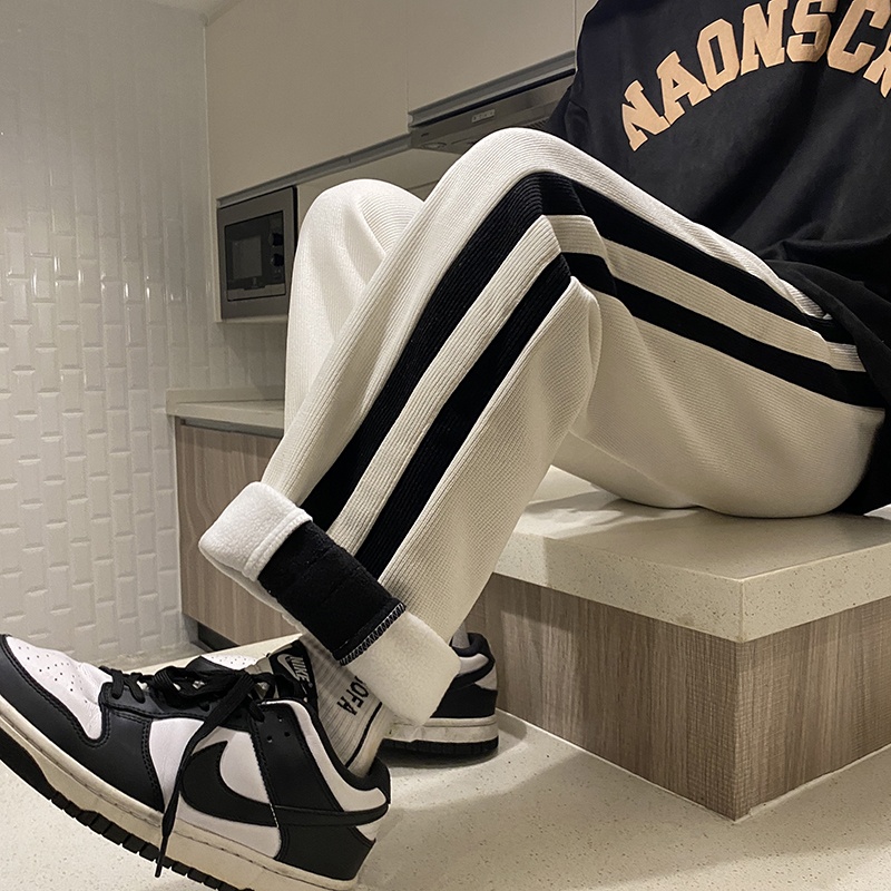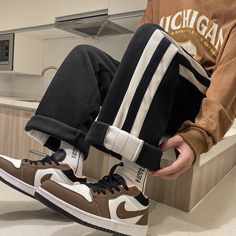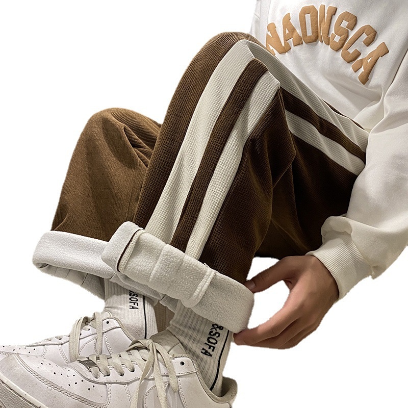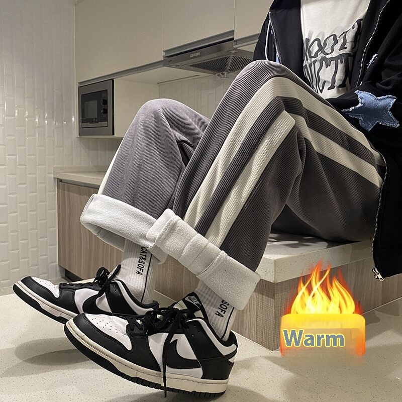 Corduroy Casual Pants Winter Plus Velvet Thickened Pants Men'sy Brand Hong Kong Style Loose Couple Striped Sports Pants