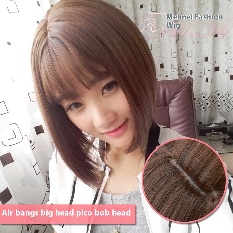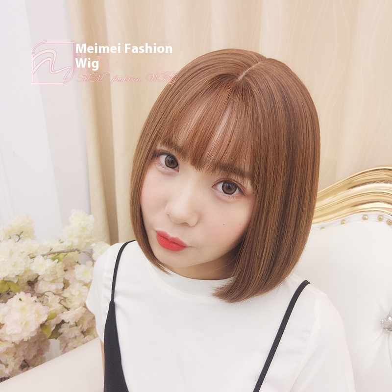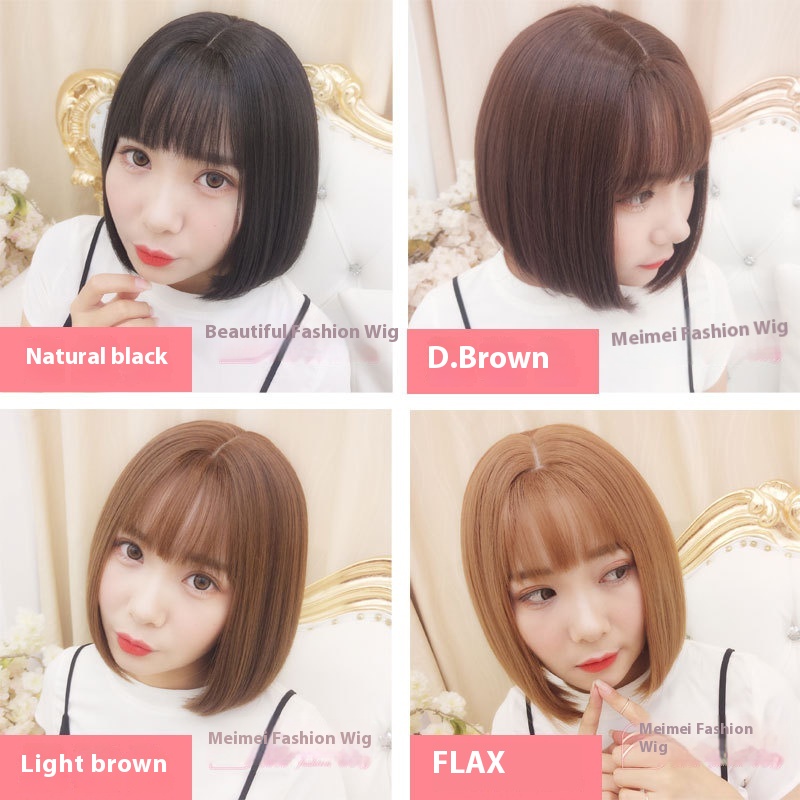 Wig Female Short Hair B O B O Bob Hair Realistic Air Bangs Middle Parting Big Scalp Student Head Full Hair Cover