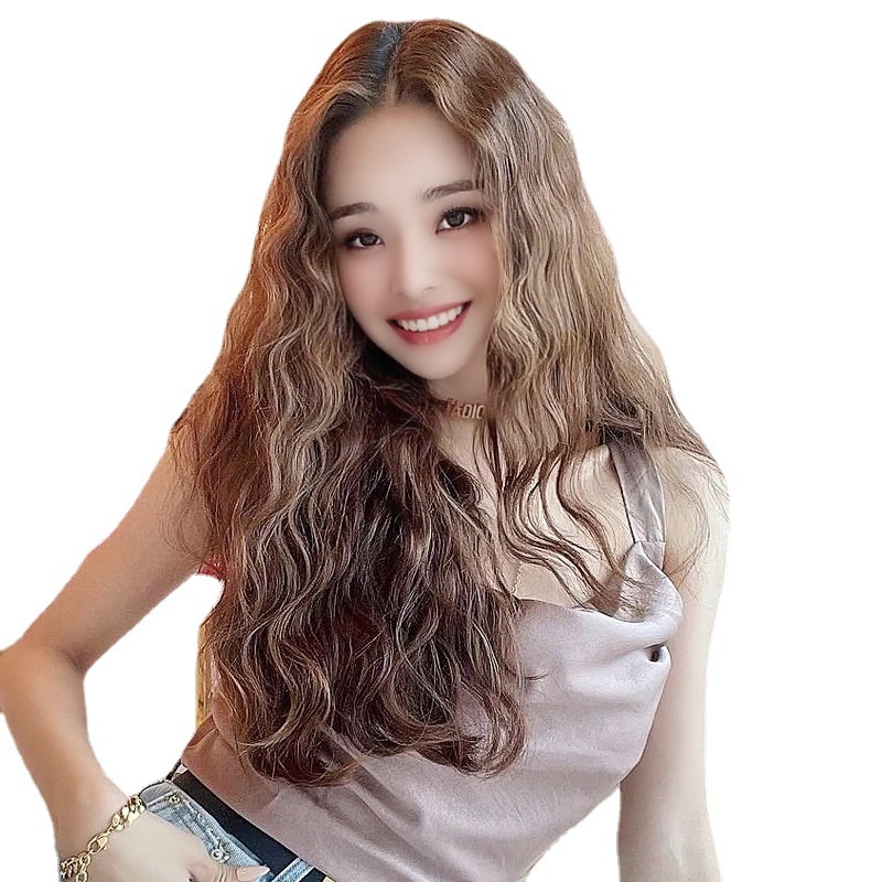 's Wig For Women With Long Curly Hair, Internet Celebrity Wool Roll, Middle-parted Corn Perm, Long Hair, Naturally Fluffy, Chemical Fiber Full Headgear Style
