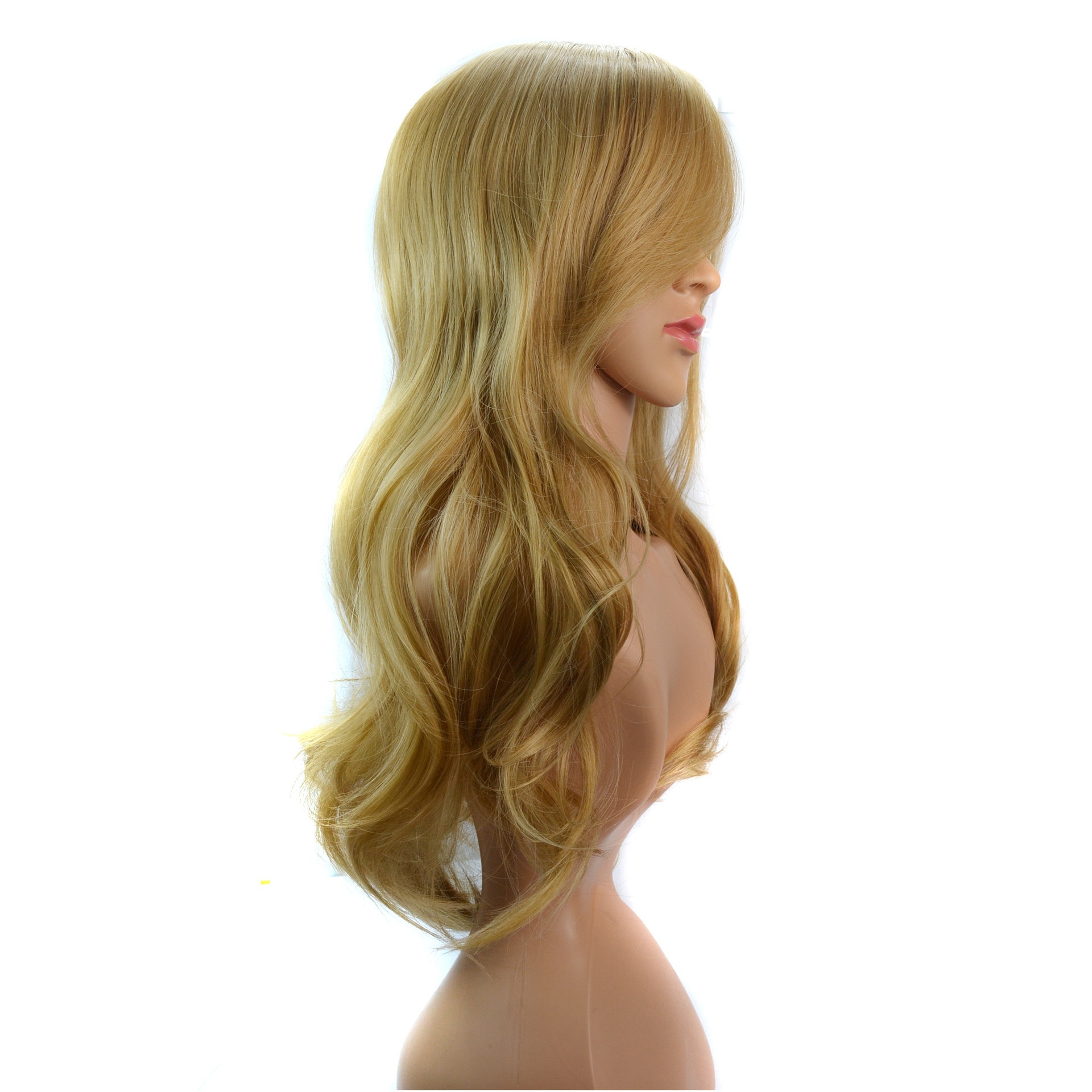 Foreign Trade European And American Women's Wig Headgear Long Oblique Bangs Golden Wavy Curly Wig Headgear