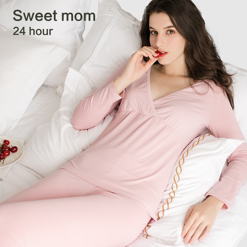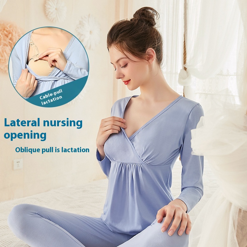 Pregnant Women's Autumn Clothes And Long Pants Set, Nursing Pajamas, Thermal Underwear, Autumn And Winter Modal Confinement Clothes, Nursing Clothes, Mianxi