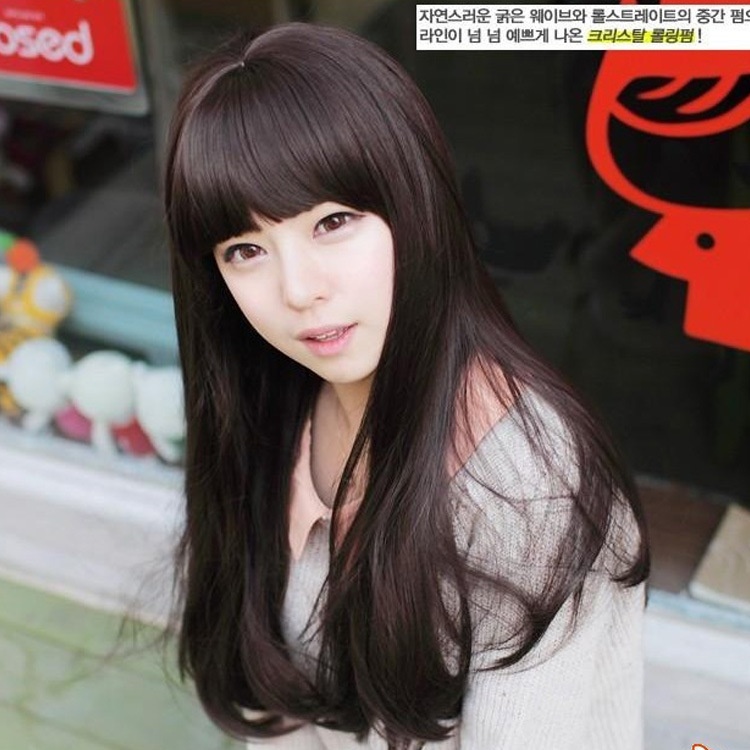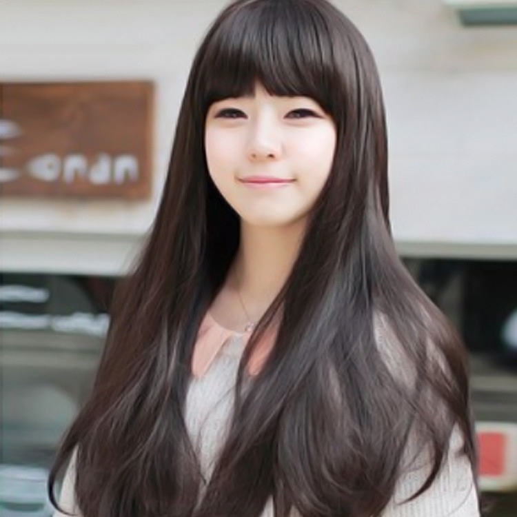 Air Bangs Girl With Bangs, Long Curly Hair, Medium-length Wig, Long Straight Hair, Fluffy Real Girl Wig Direct Sale