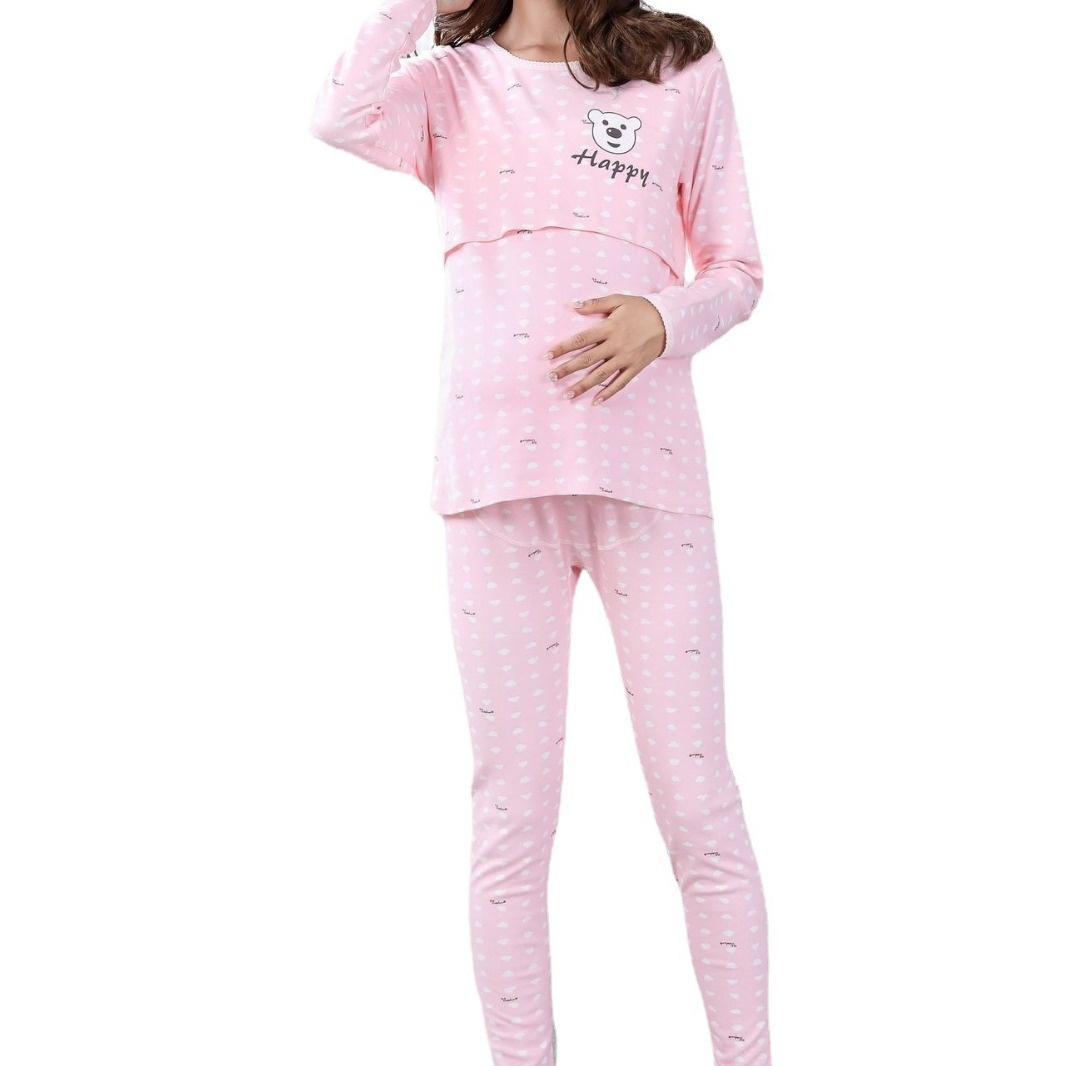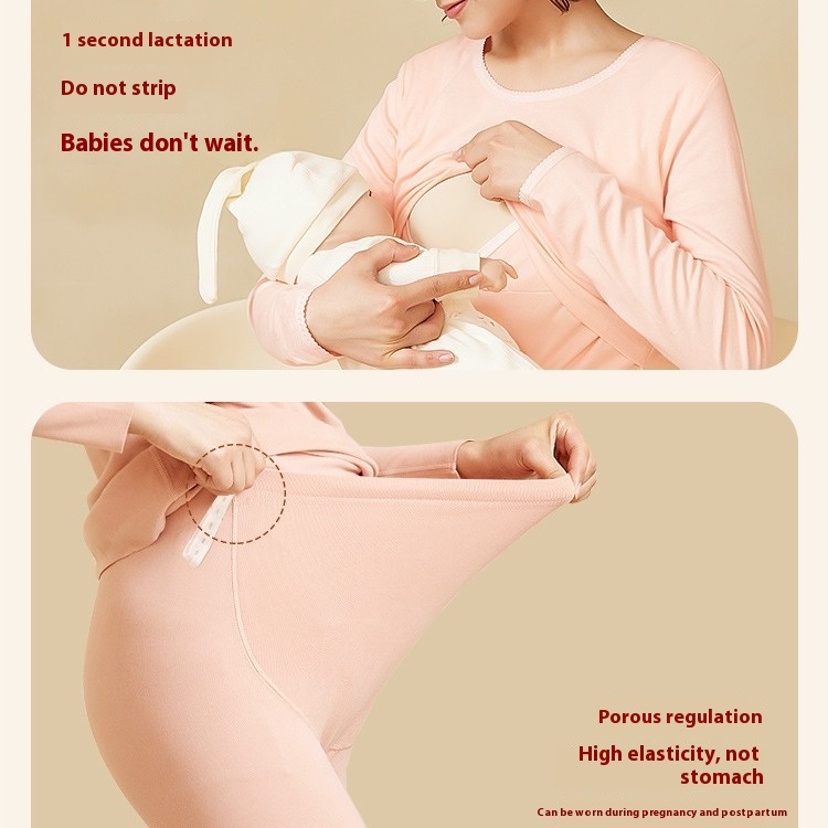 Maternity Thermal Underwear Set, Postpartum Confinement Clothes, Autumn Sleeves, Long Johns, Pajamas, Autumn And Winter Pure Cotton Home Clothes, Breastfeeding