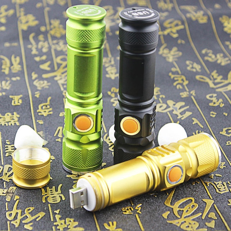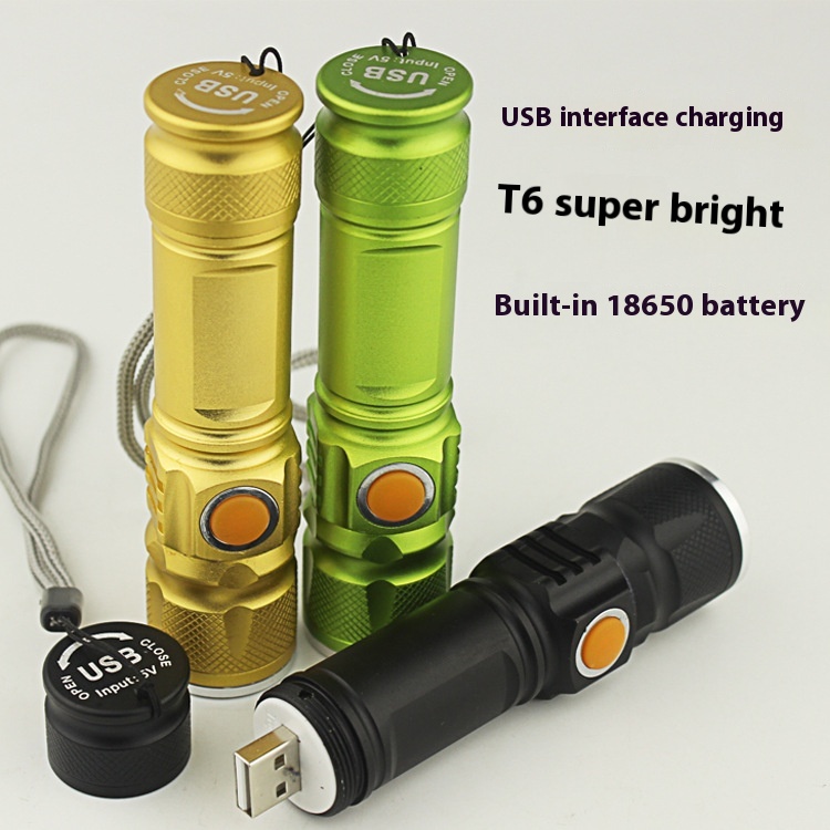 Led Mini Bright Flashlight U S B Rechargeable Aluminum Alloy Small Flashlight T6 Zoom Long Shot Outdoor Lighting Long Shot