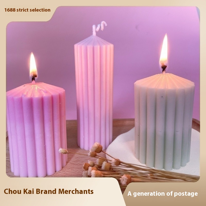 Simple D I Y Round Coarse Tooth Striped Spire Cylindrical Candle Aromatherapy Silicone Mold Ornaments Cake Decoration Mold