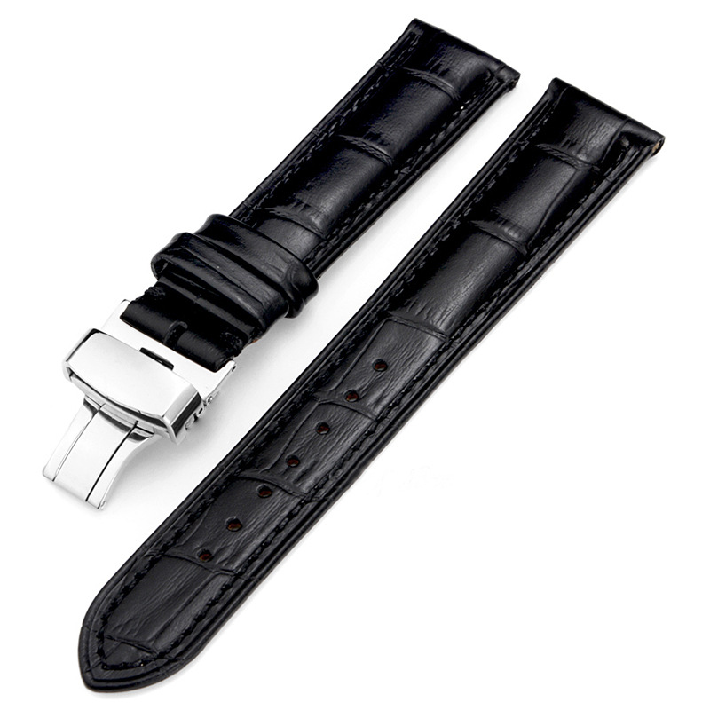 Cowhide Watch With Bamboo Pattern Genuine Leather Watch Strap Men's Butterfly Buckle Belt Accessories Black Brown20mm