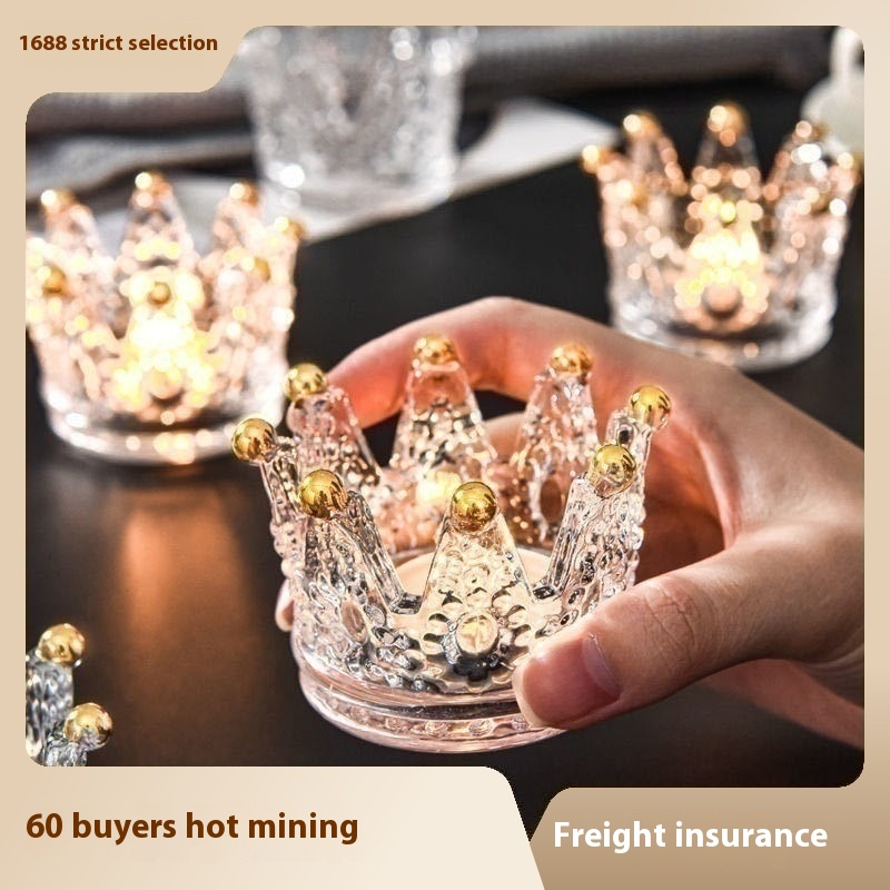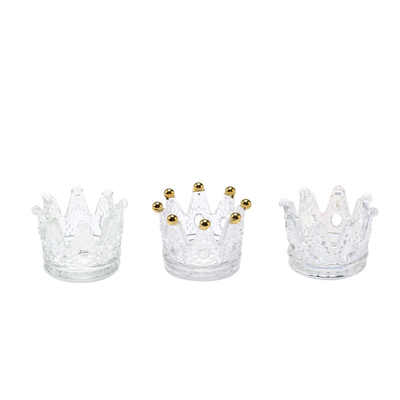 轻奢玻璃水晶金色皇冠烛台项链戒指收纳碟创意摆件香薰蜡烛台