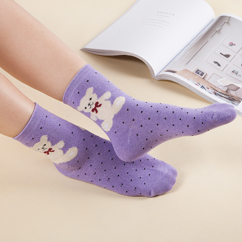 Carefully Selected5 Pairs Of Autumn And Winter Quality Imitation Rabbit Wool Socks With Automatic Free Shipping, Thickened Warm Mid-calf Solid Color Versatile Women's Socks