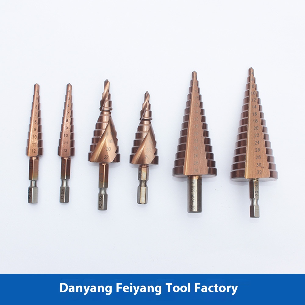 M35 Cobalt-containing Stainless Steel Pagoda Drill Triangular Hexagonal Straight Flute Spiral Flute Step Drill Containing C O Pagoda Drill Bit
