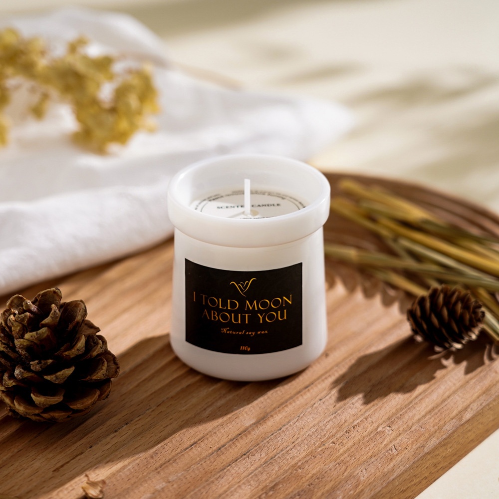 风白色系简约火红香薰蜡烛罐已填充植物大豆蜡礼物居家花形香