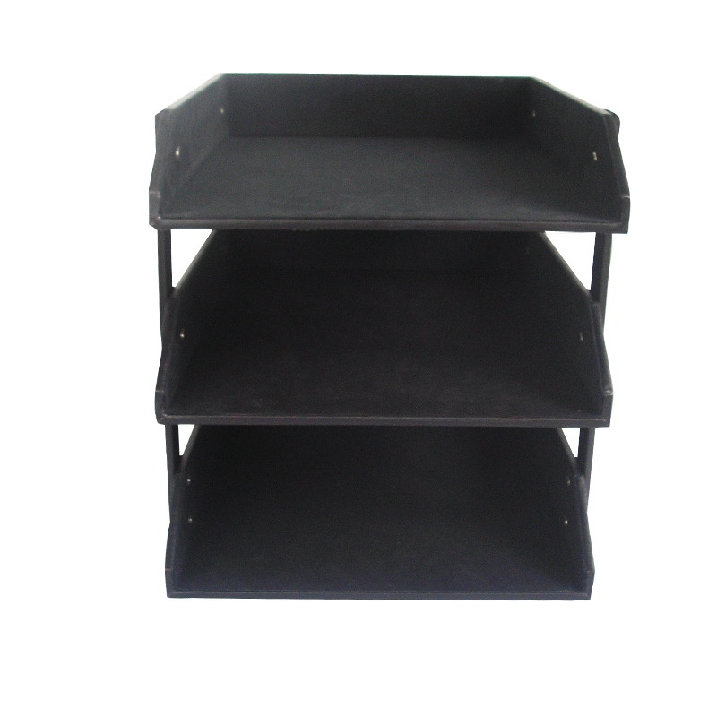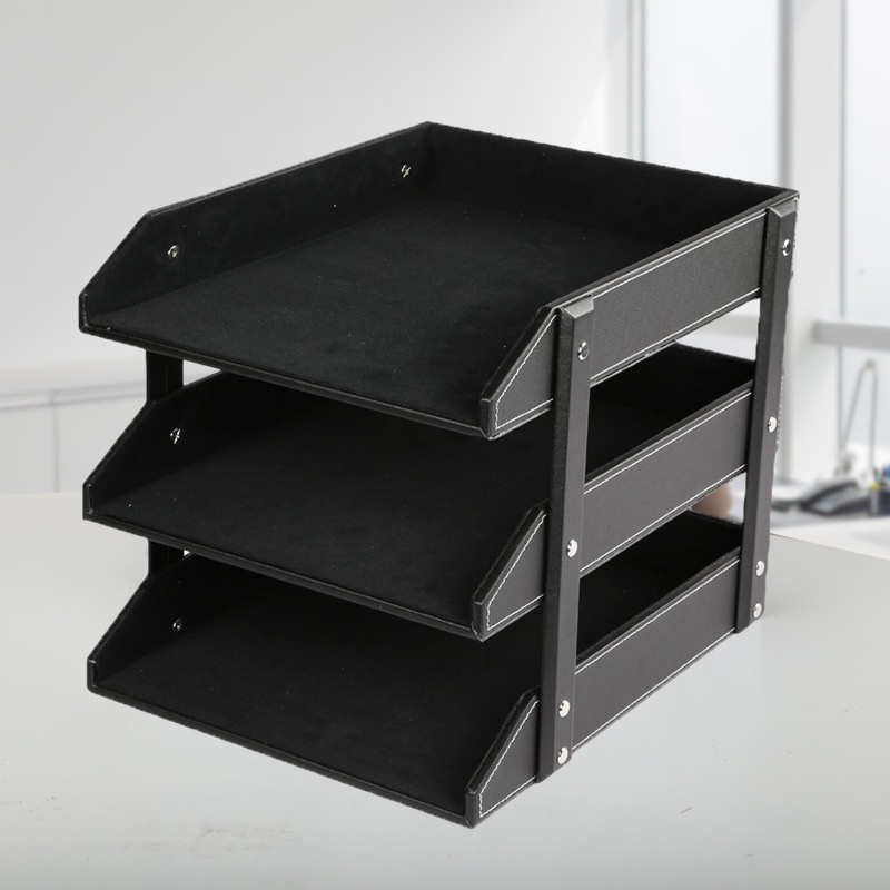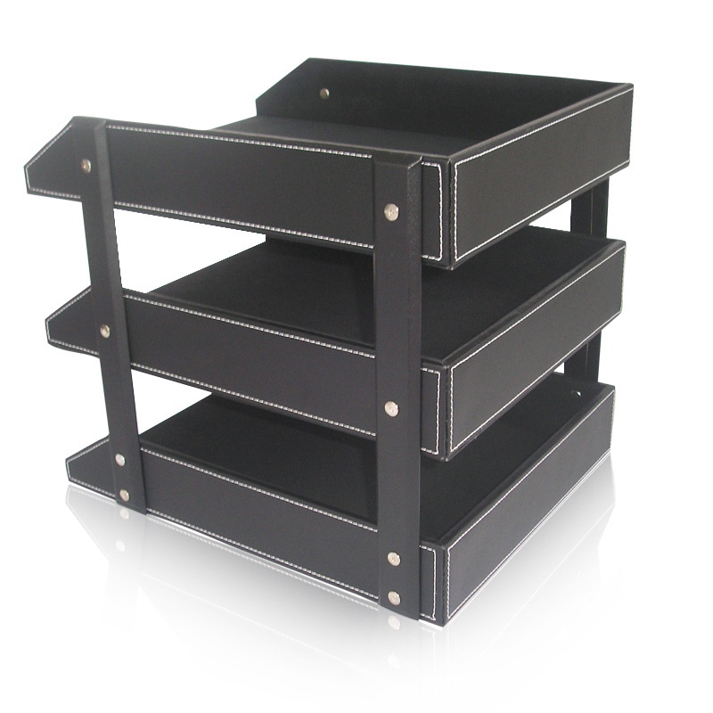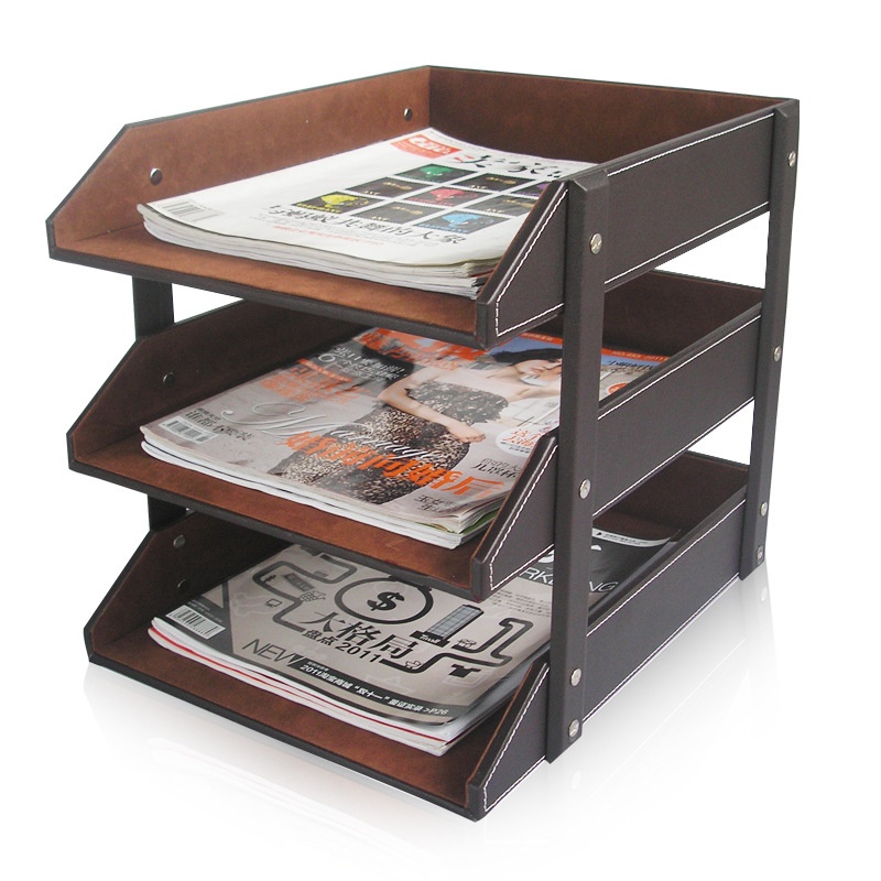 Leather Three-layer File Rack Information Rack Desktop Office Storage File Tray Business Office Supplies Book Rack